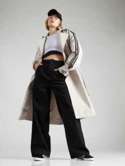LogoprintTrenchcoatSplitKnop placketZijdelingse strepenTurn-down kraagMet riemLabel borduurwerkOp staal nadenNiet gevoerdKnoopsluiting