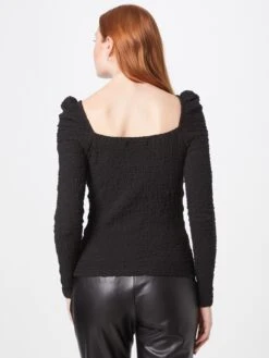 EffenJerseyCarréhalsGedrapeerdGevoerde zoom/randRechte zoomPofmouwenUitgesneden rugOp staal nadenMet textuur