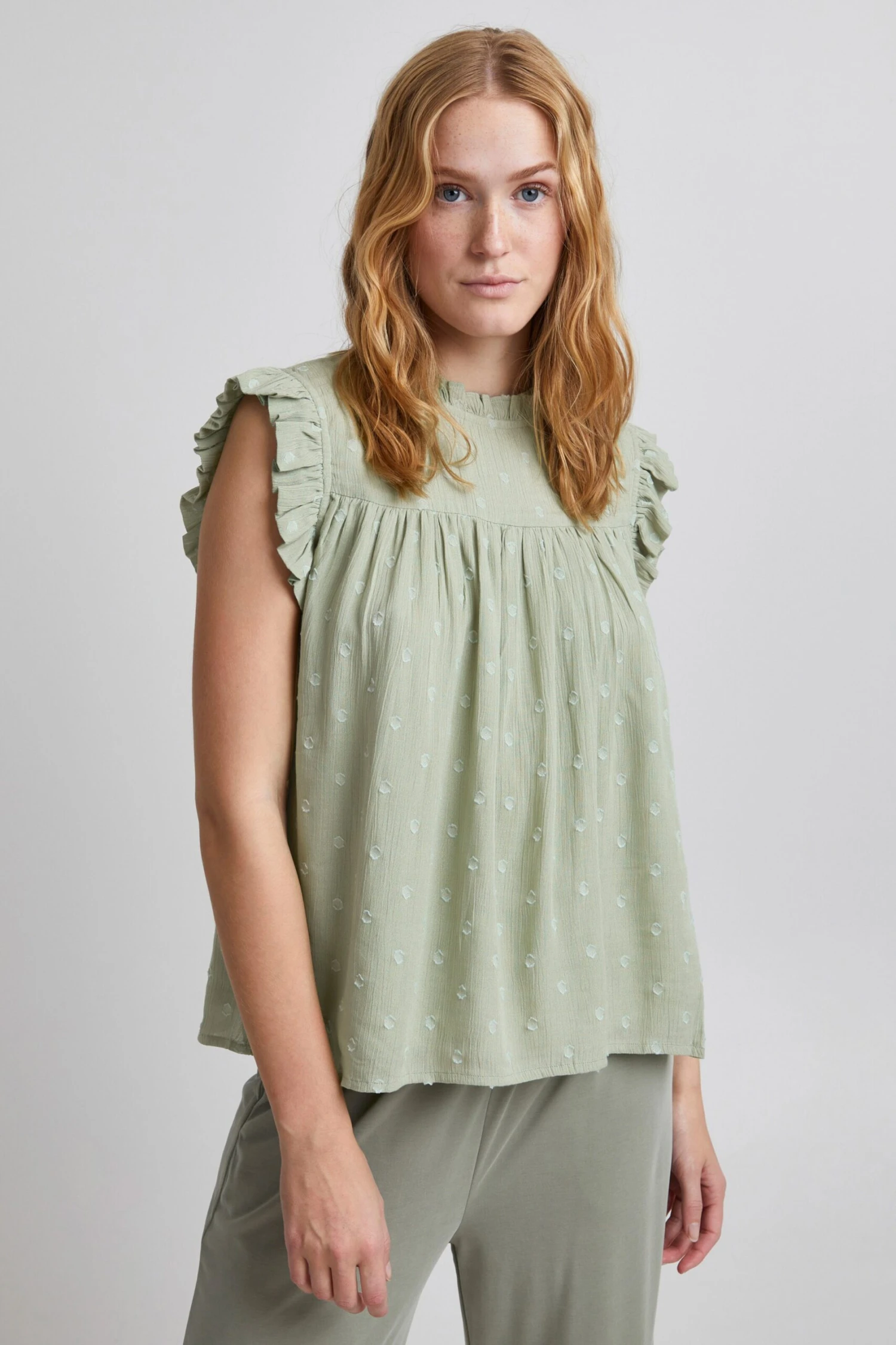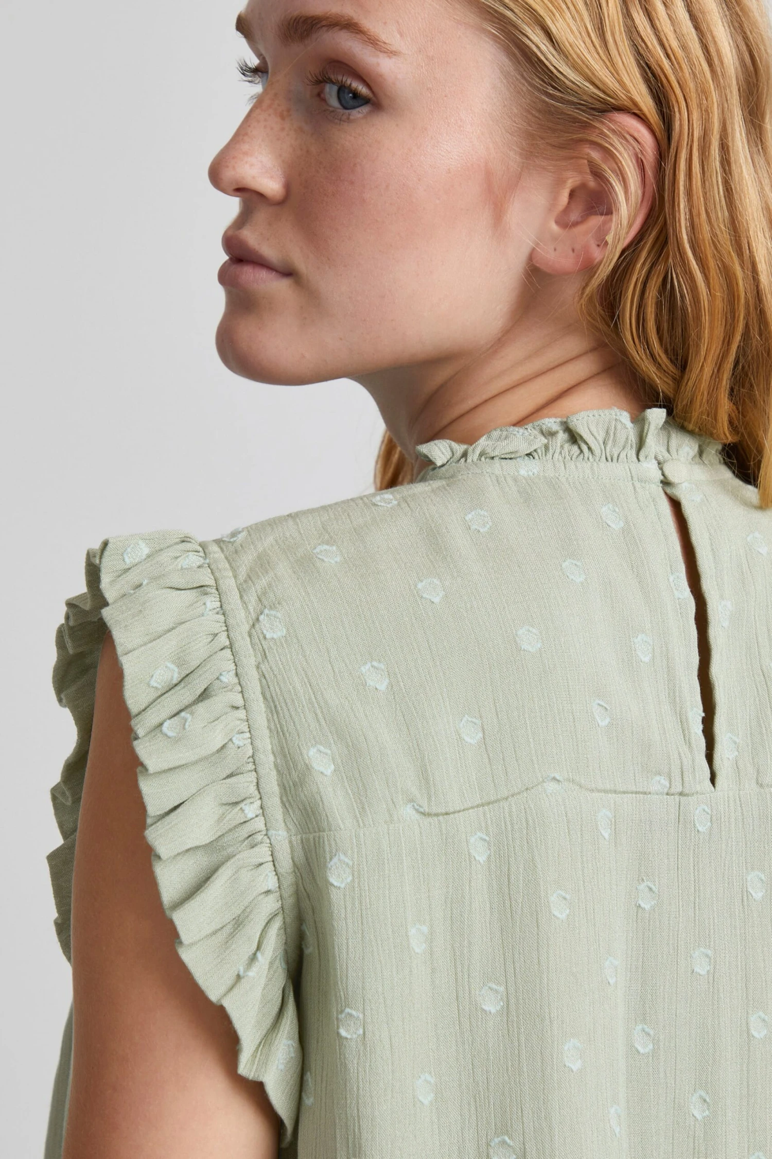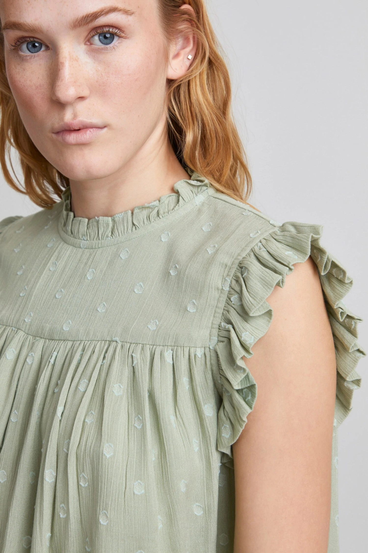 GestippeldCrêpeOpstaande kraagBlouseshirt