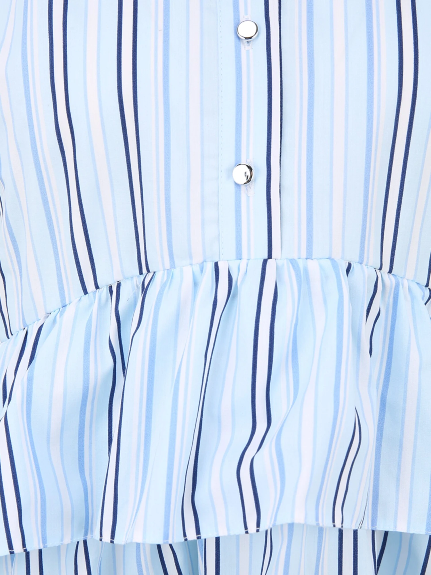 GestreeptKatoenKentkraagVolantGevoerde zoom/randKnop placketTurn-down kraagAll-over patroonVoelt zacht aanWijde blouse