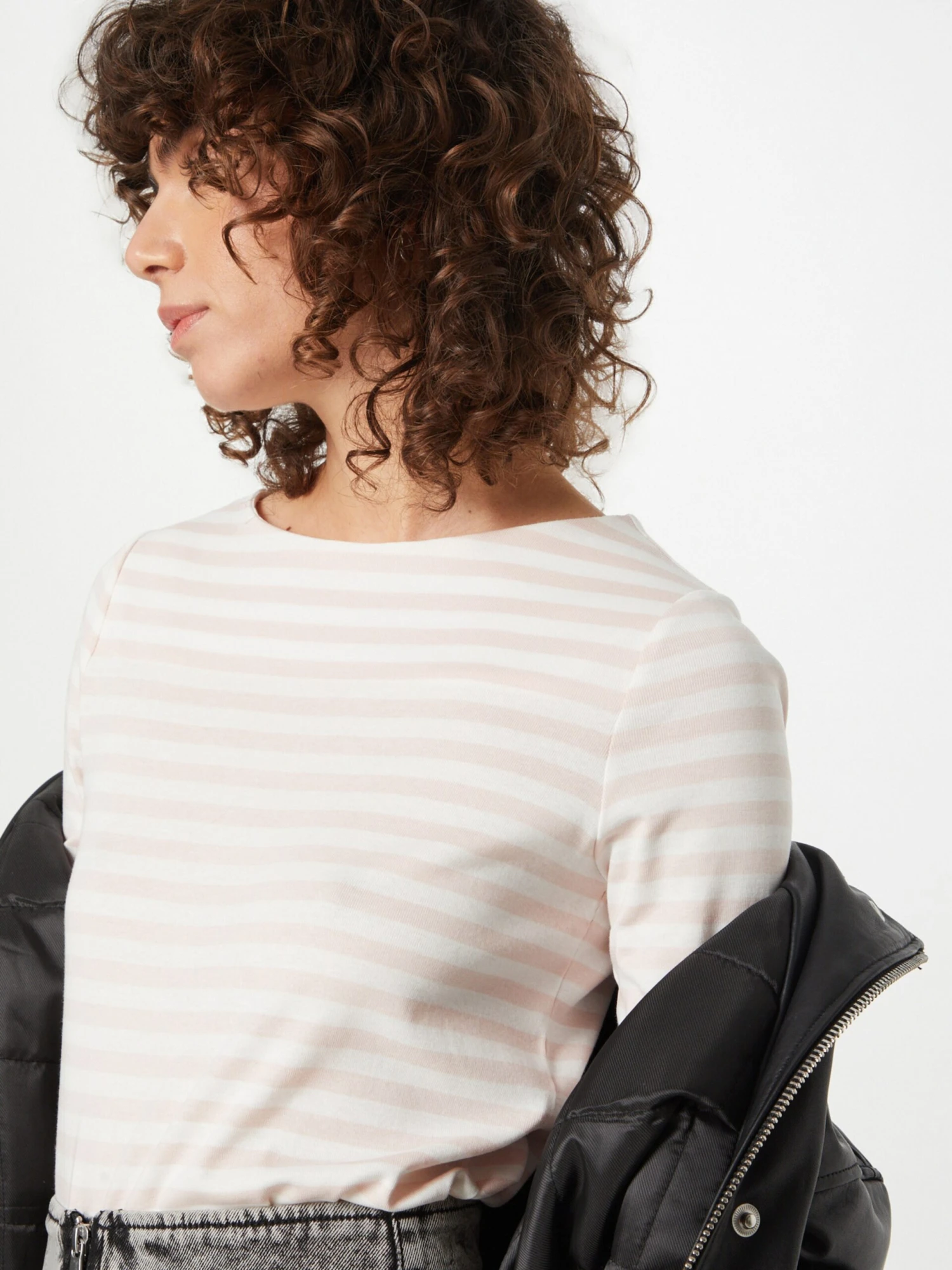 GestreeptJerseyBoothalsGevoerde zoom/randRechte zoomAll-over patroonVoelt zacht aan