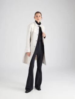 EffenWolKlassieke mantelDrukknopenCapuchon met trekkoordZakken aan de zijkantStikselsGladde stofLicht gevoerdDrukknoop
