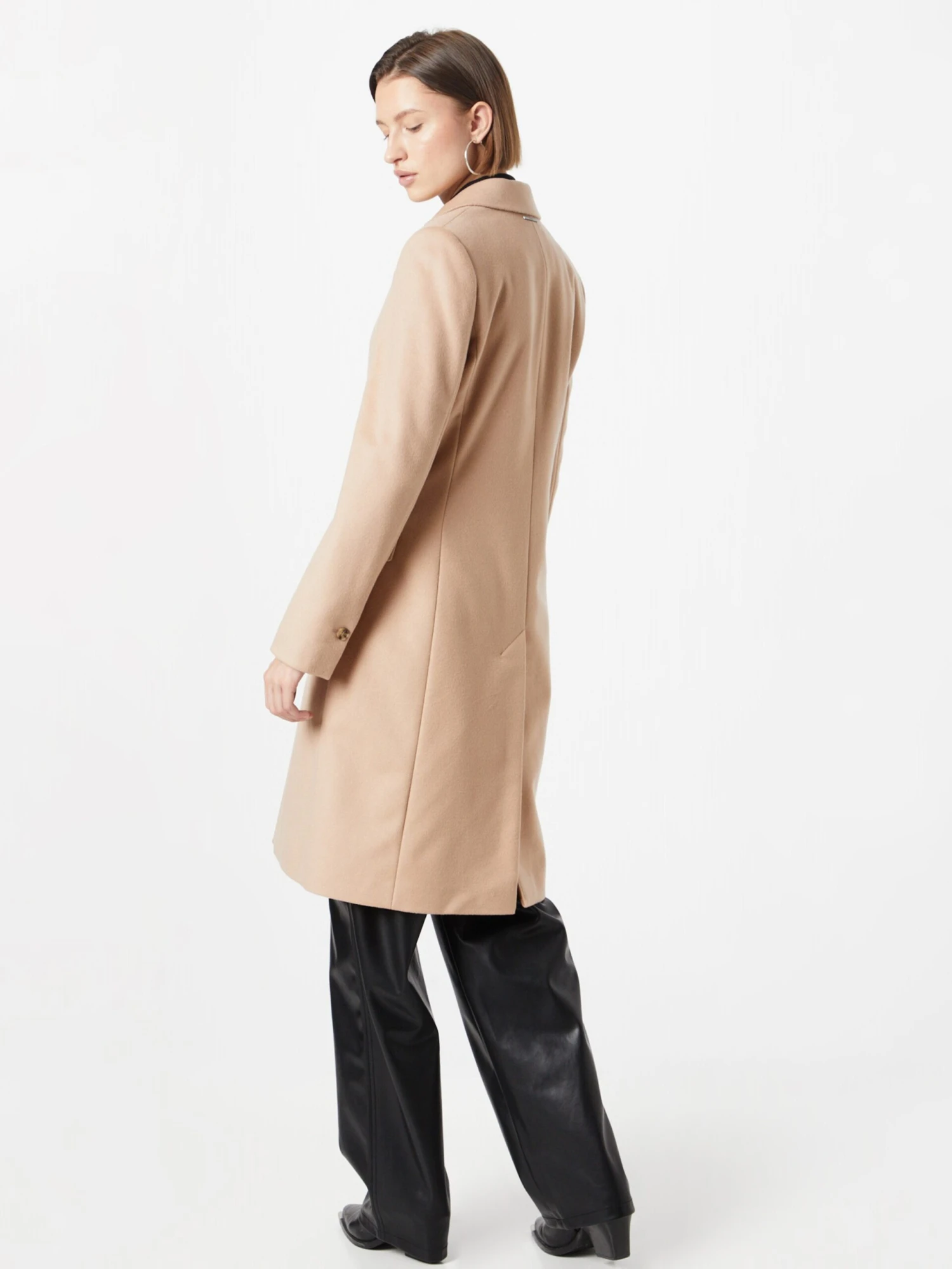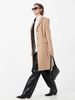 EffenWolKlassieke mantelSplitRechte zoomRevers kraagOpzet-/flapzakLabel plaatjeZware stofLicht gevoerdKnoopsluiting