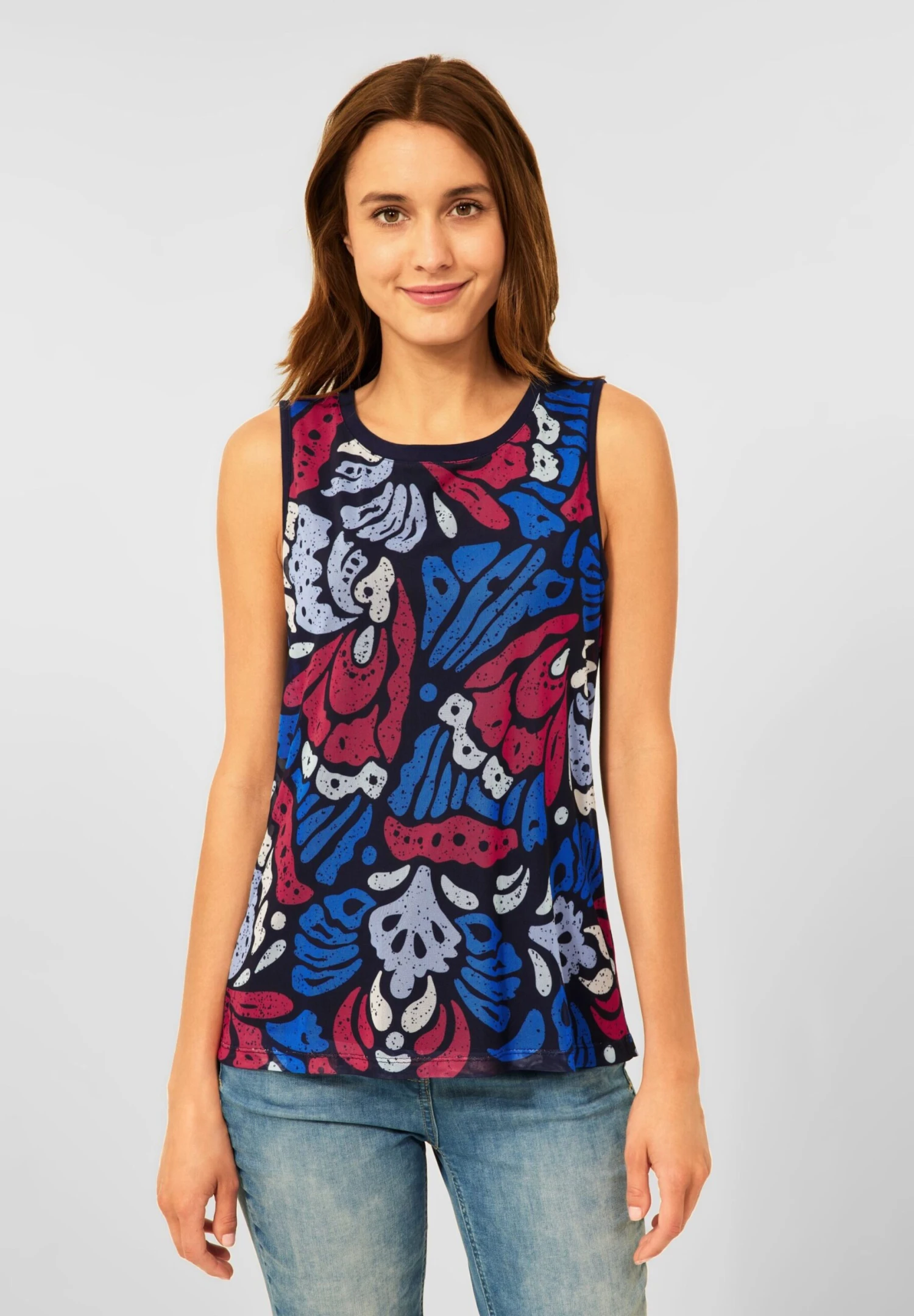 KatoenBrede bandjesRonde halsBrede mouwopeningenMesh