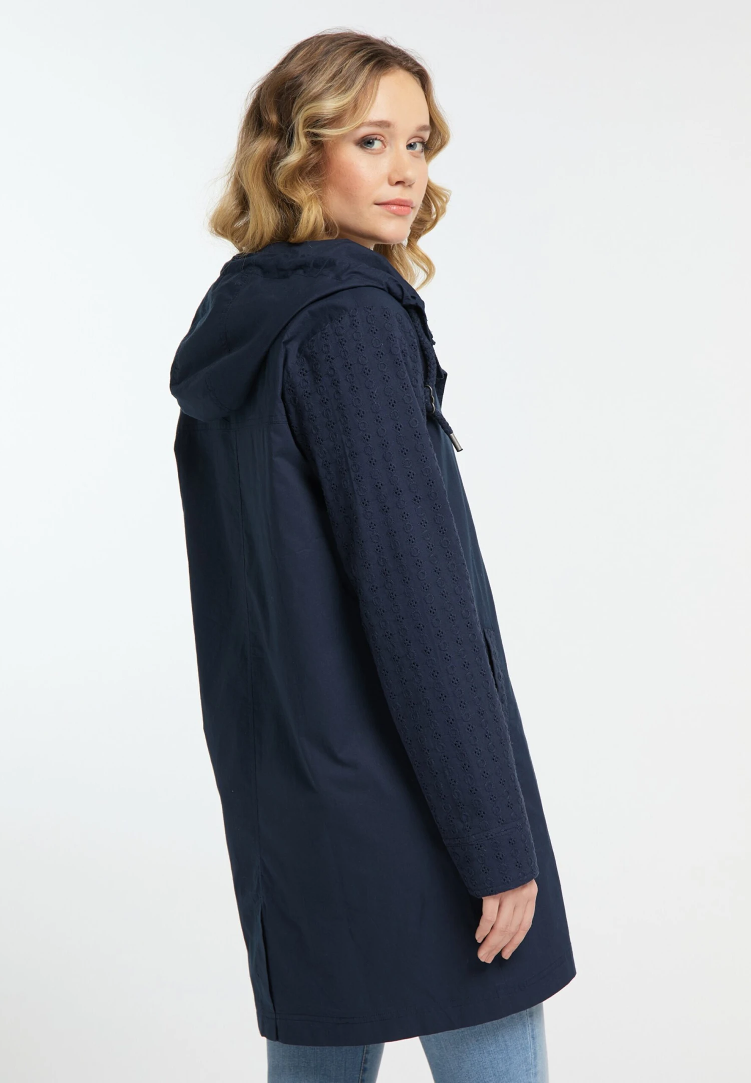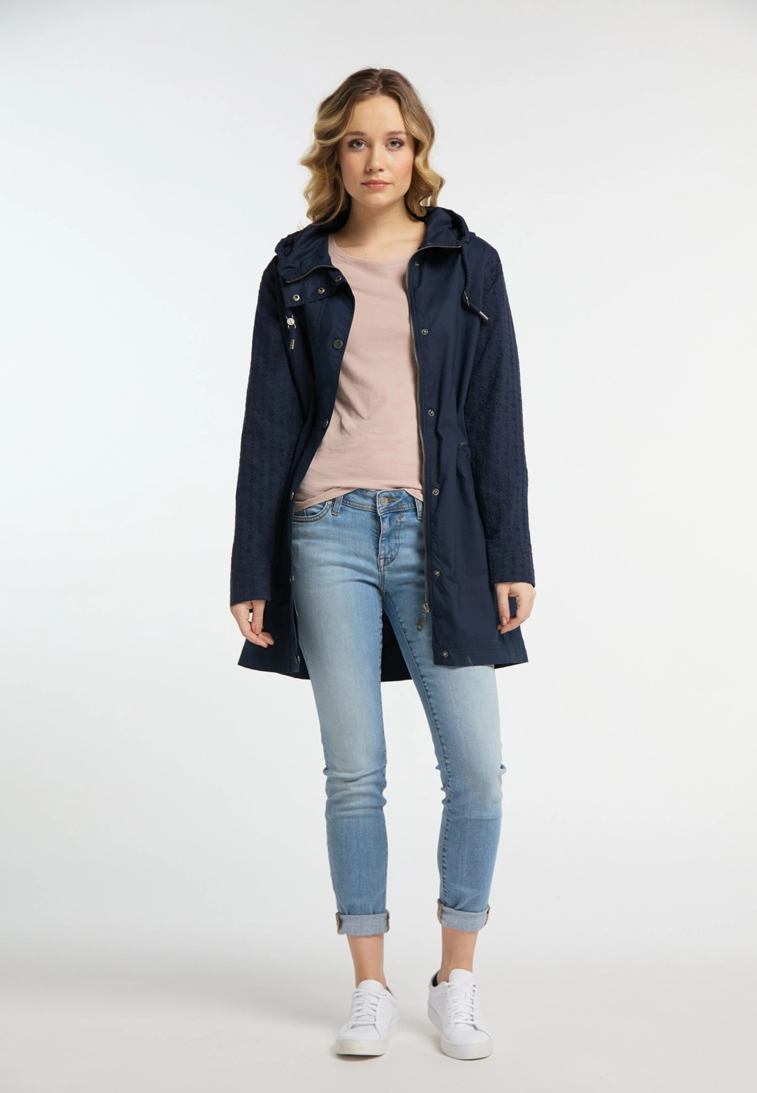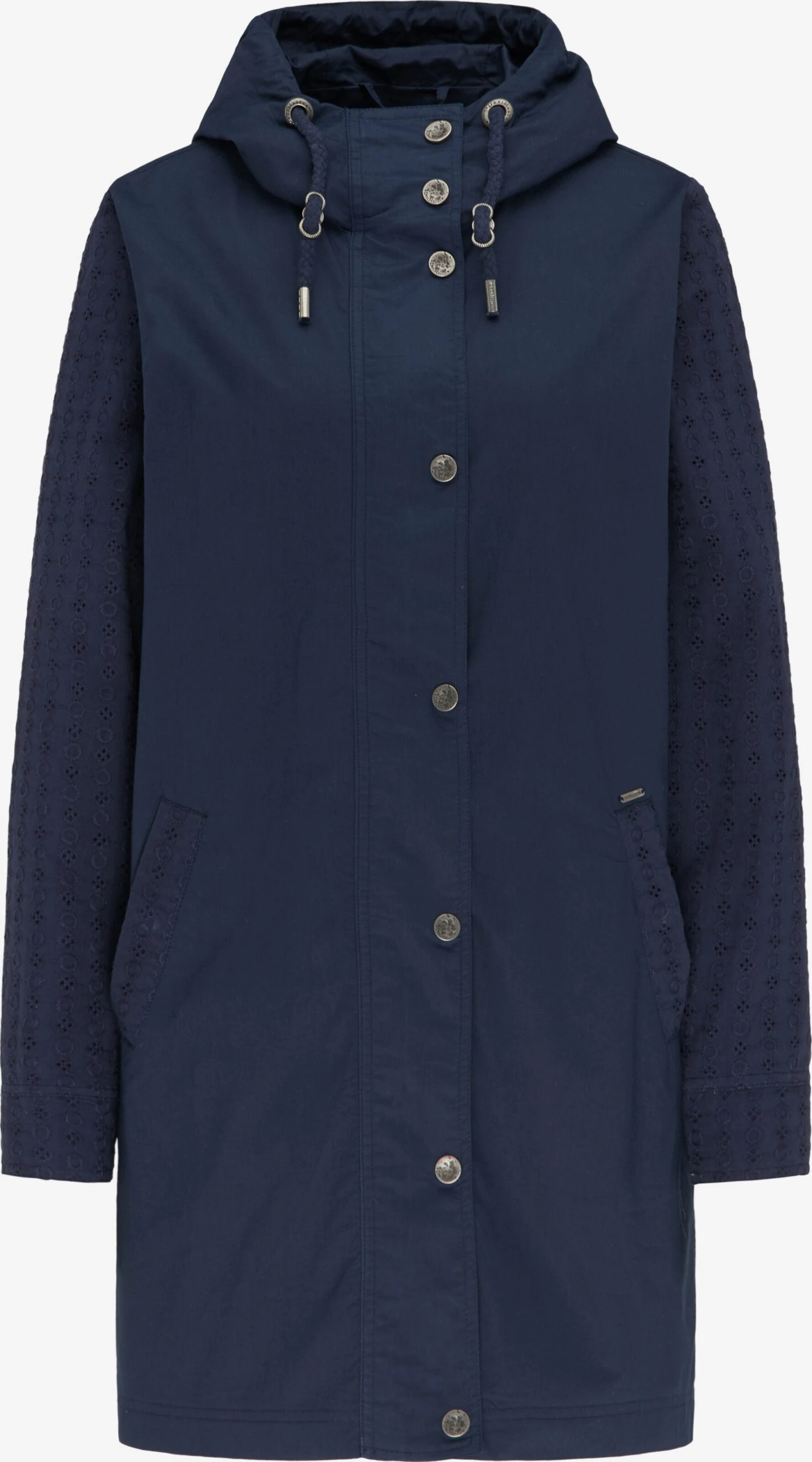 EffenKatoenDrukknopenCapuchon met trekkoordMet windschermVerborgen ritsLabel borduurwerkOp staal nadenStevige stofMetalen oogjesLicht gevoerd
