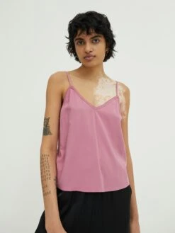EffenJerseyViscoseSpaghettibandjesV-halsRechte zoomRecht modelOp staal nadenLENZING™ ECOVERO™ Viscose*
