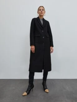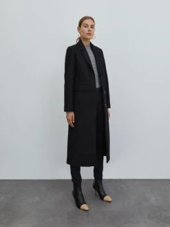 EffenWolKlassieke mantelSplitKnop placketRevers kraagOpzet-/flapzakScheerwolZware stofLicht gevoerd