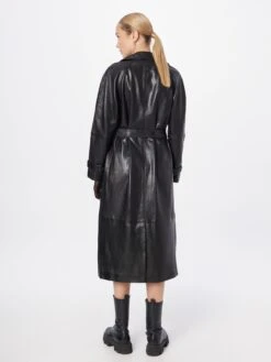 EffenLeerTrenchcoatRechte zoomKnop placketRevers kraagTaillebandOm te knopen/bindenZakken aan de zijkantOp staal nadenStevige stofLicht gevoerdKnoopsluiting