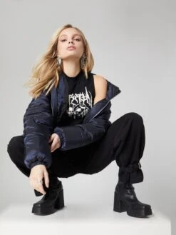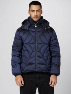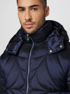 EffenGewatteerde jasAfneembare capuchonStaande kraagZakken aan de zijkantStikselsGladde stofWarm gevoerdRitssluiting