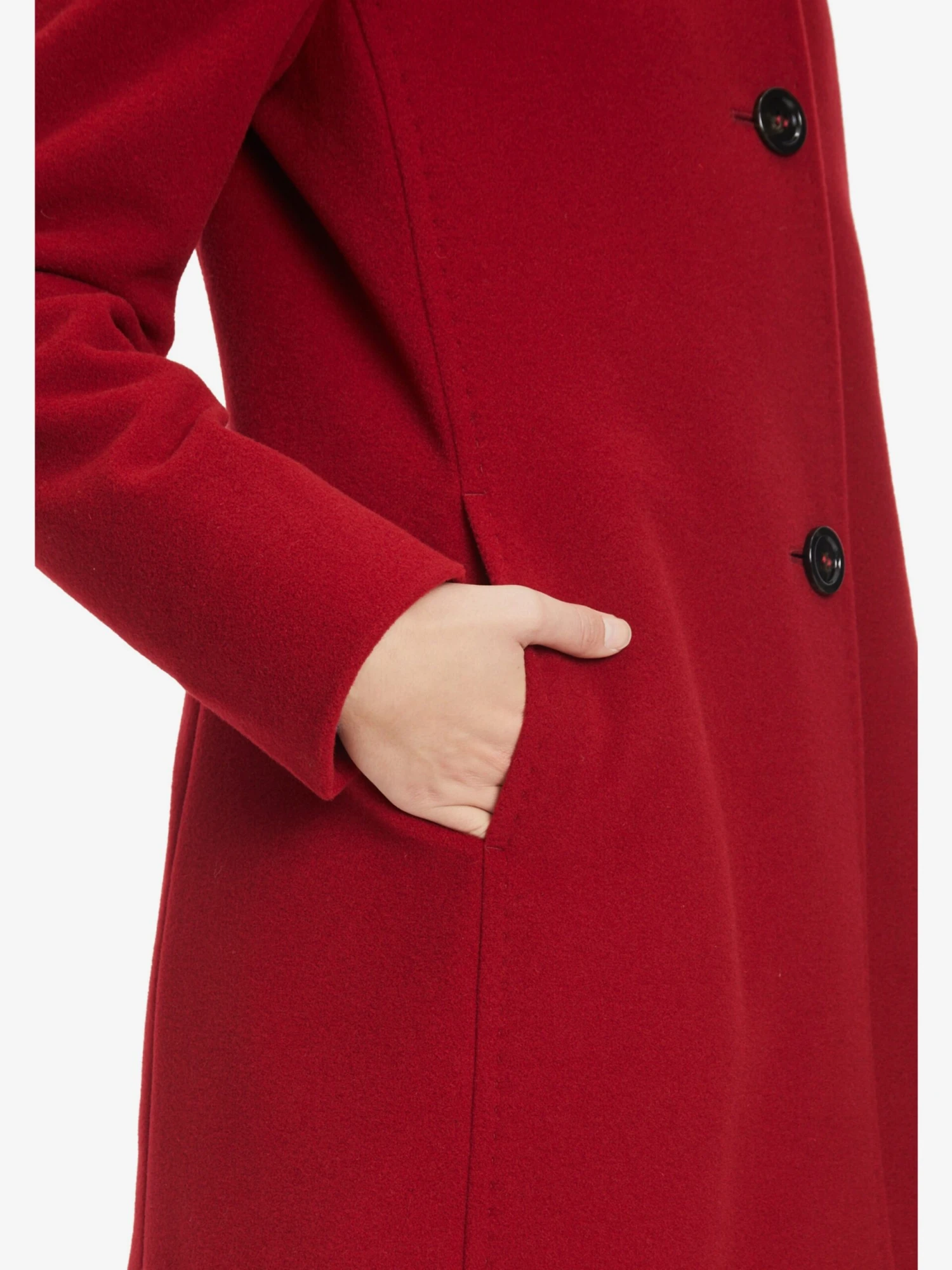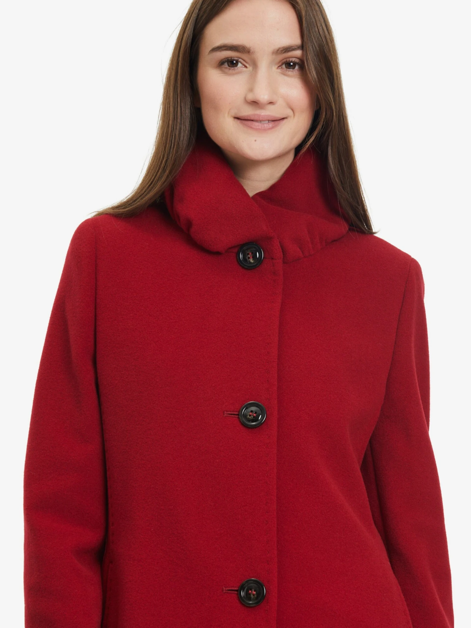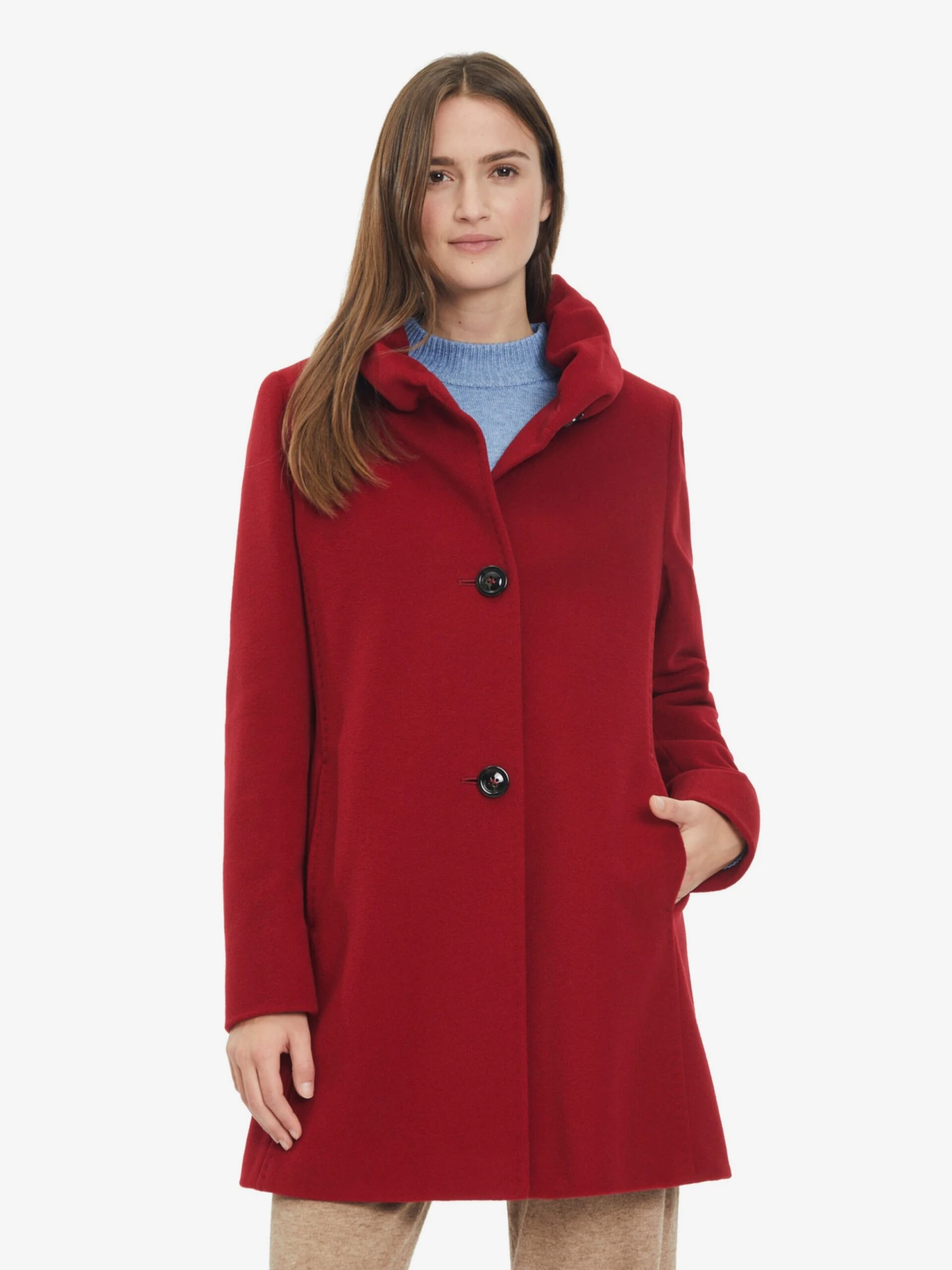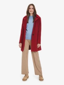 EffenWolKlassieke mantelKnop placketStaande kraagZakken aan de zijkantGladde stofVoelt zacht aanWarm gevoerdKnoopsluiting