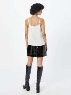 EffenZijdeSpaghettibandjesV-halsZonder kraagKantGevoerde zoom/randRechte zoomVerstelbare bandjesOp staal nadenGladde stofVoelt aan als zijdeBlouseshirt