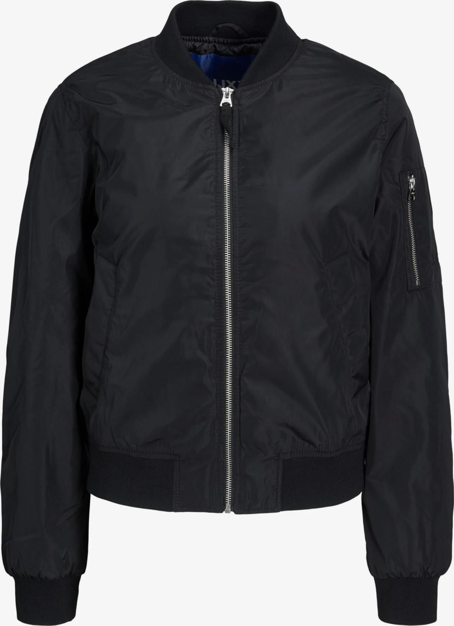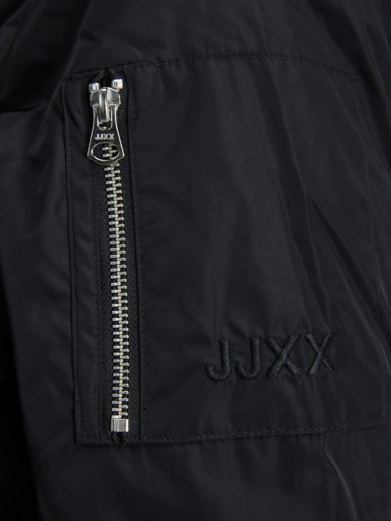 EffenBomberjackGeribbelde kraagRechte zoomGeribd ceintuurtjeMouwzakZakken aan de zijkantOp staal nadenGladde stofLicht gevoerdRitssluiting