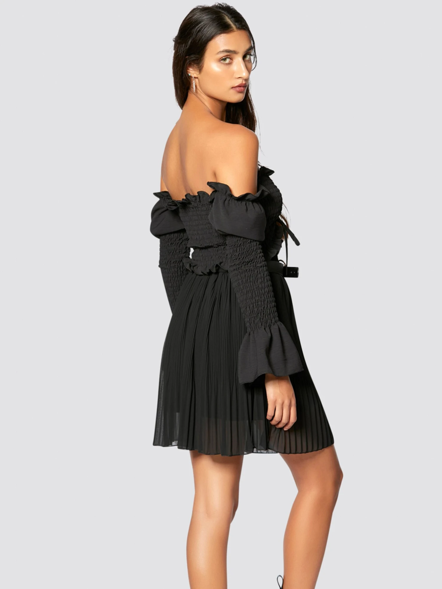 EffenBandeauCarmen halsRuchesKantBacklessTrompetmouwen
