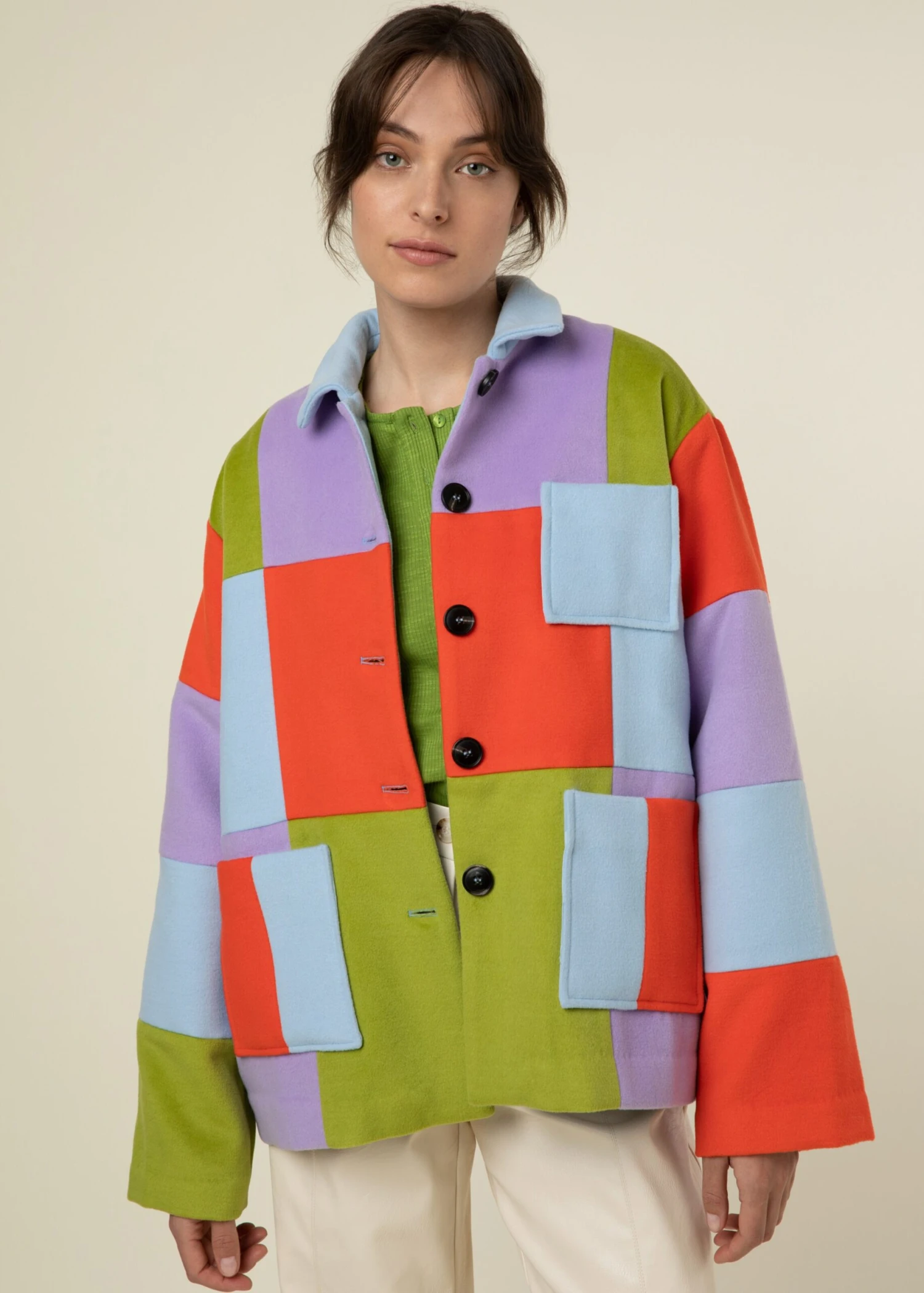 GeruitKlassieke mantelTurn-down kraagOpgezette zakkenBorstzakAll-over patroonVoelt zacht aanLicht gevoerdKnoopsluiting
