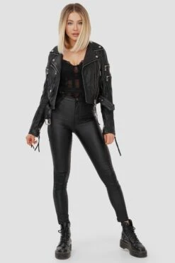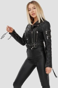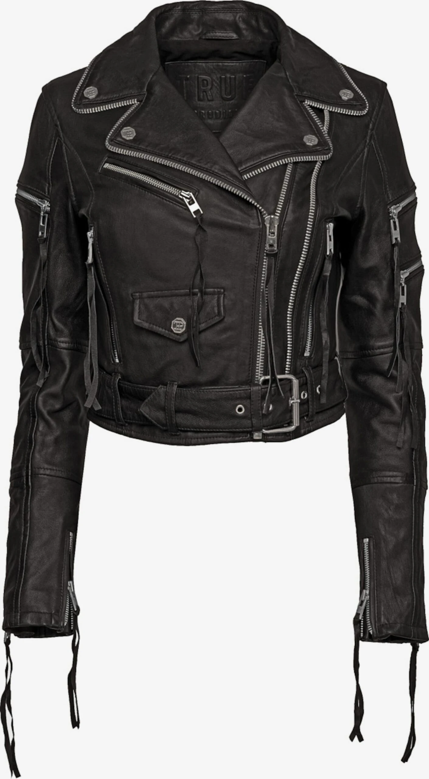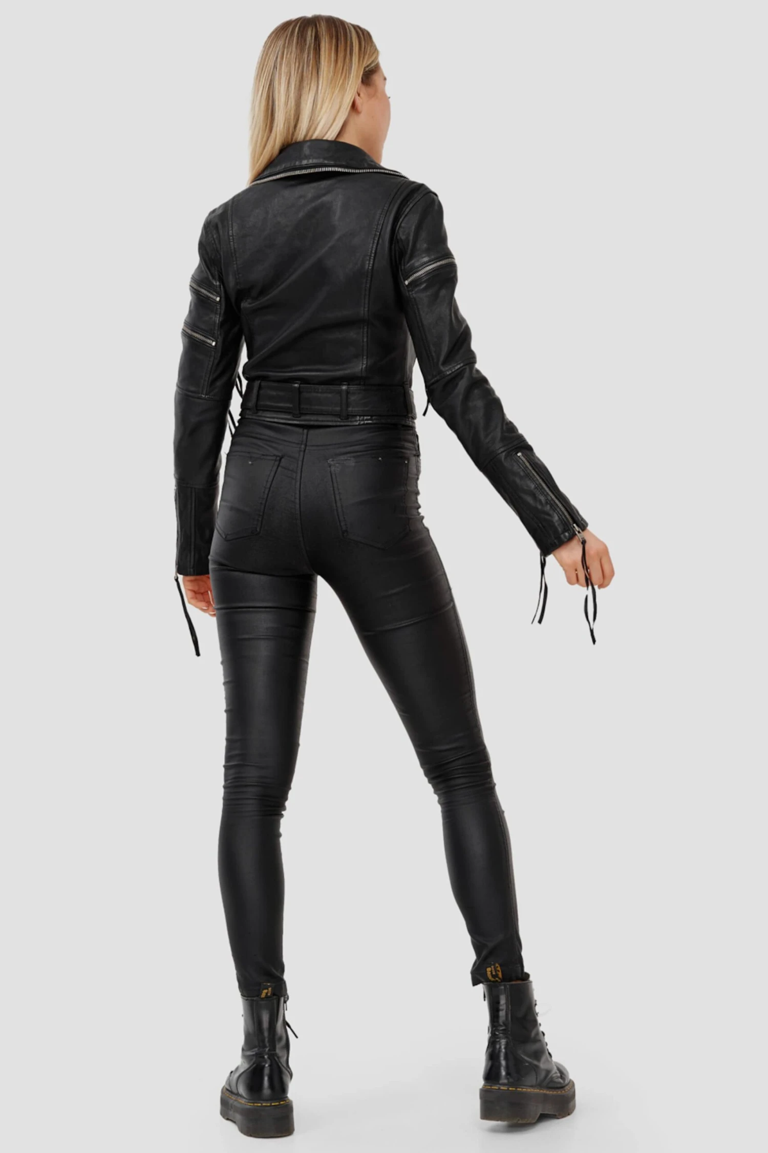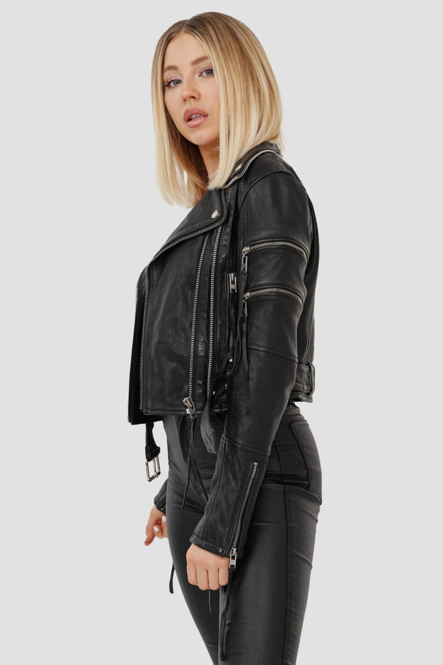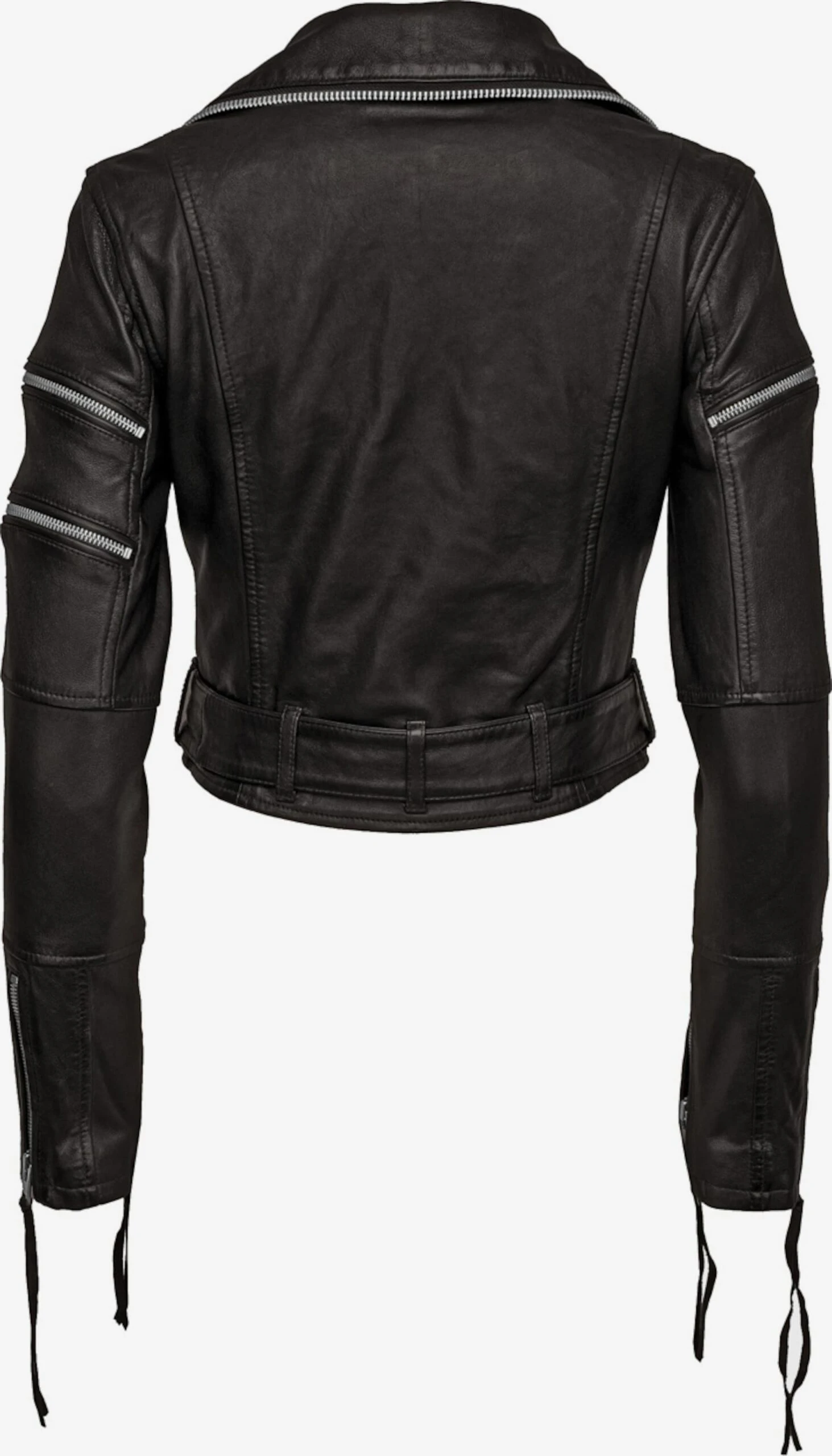 EffenLeerBikerjackRevers kraagRitszakken aan de zijkantSchuine ritsOp staal nadenGladde stofLicht gevoerd