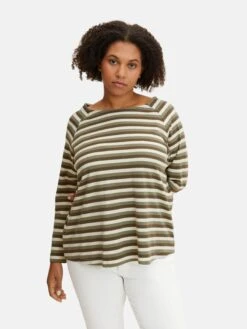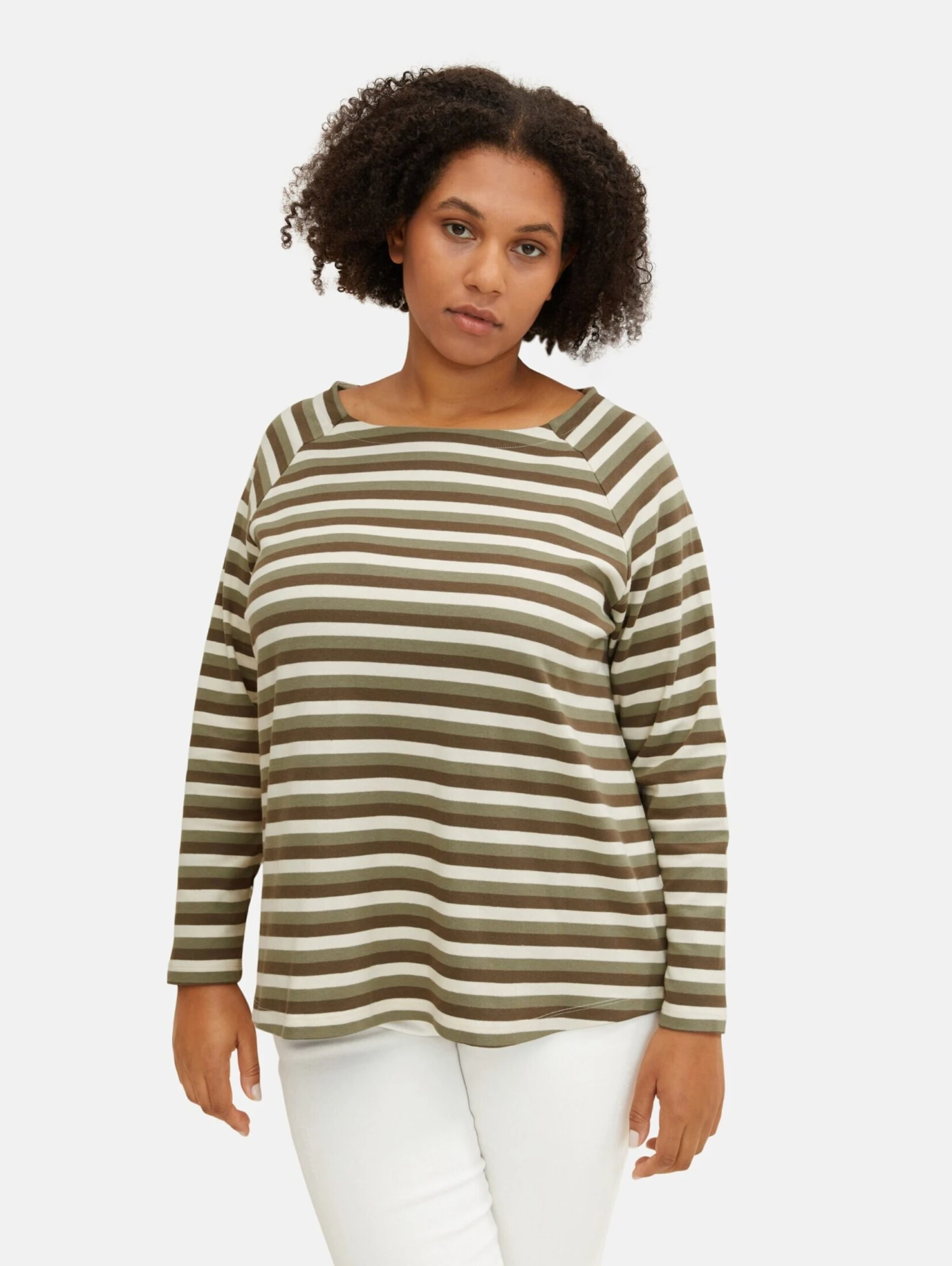 GestreeptJerseyRonde halsGevoerde zoom/randRaglanmouwenAll-over patroonVoelt zacht aan