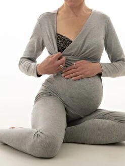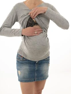 MélangeJerseyV-halsGedrapeerdWikkel designGevoerde zoom/randWikkel-lookOp staal nadenVoelt zacht aanMet borstvoedingsfunctie
