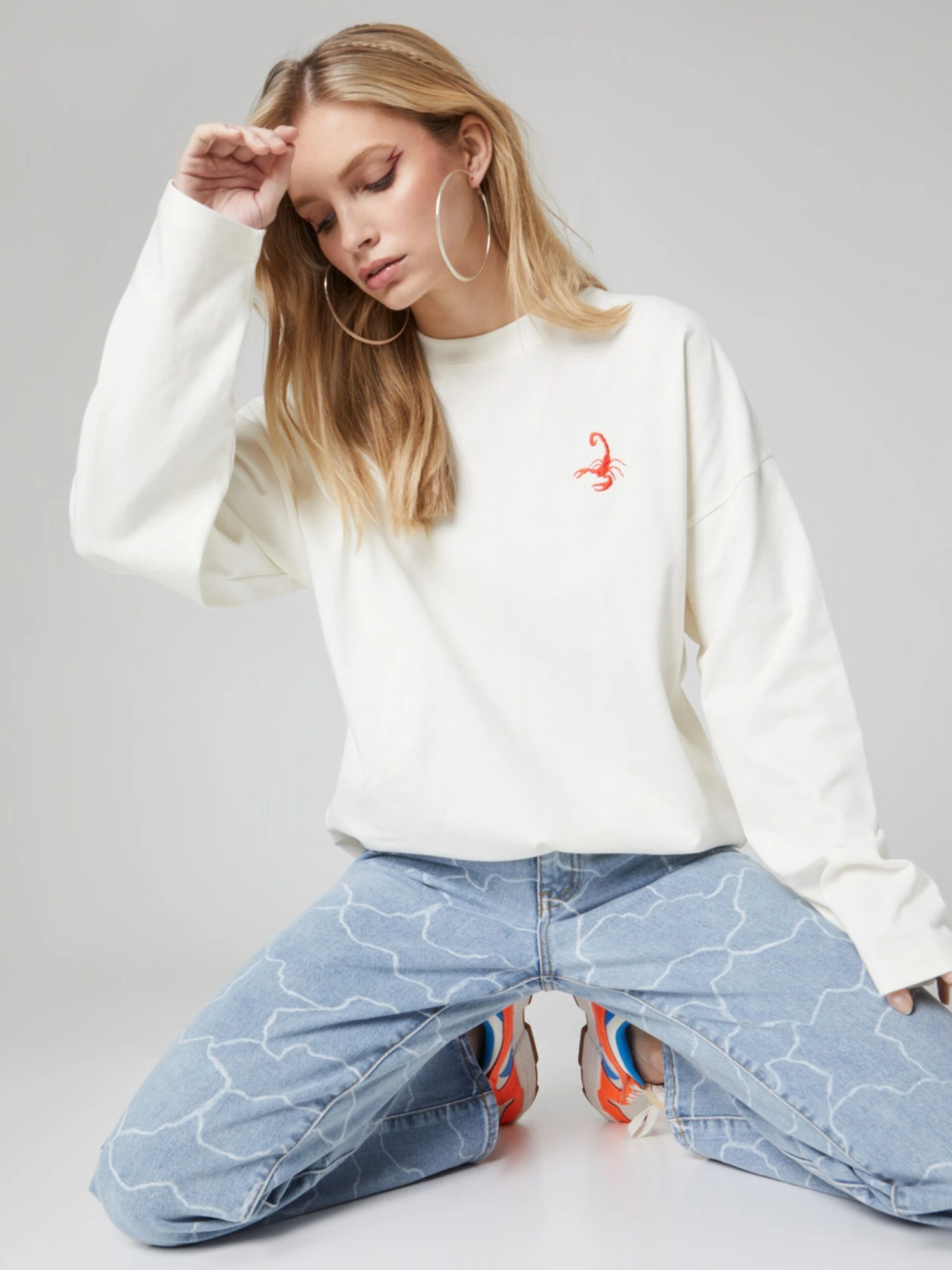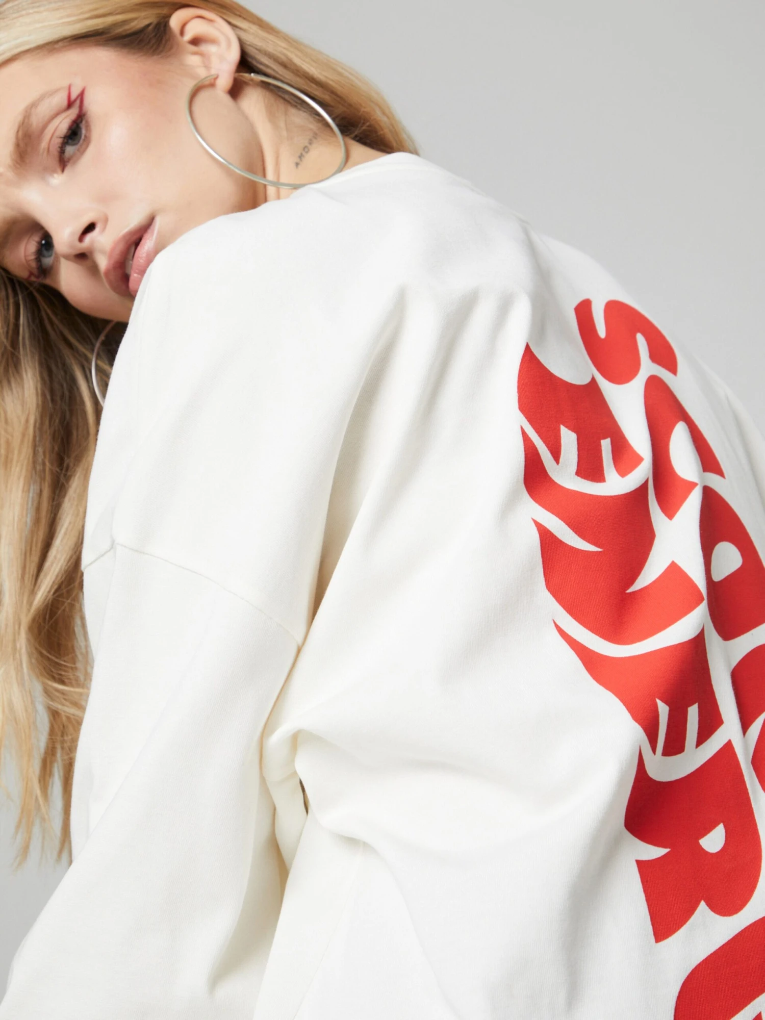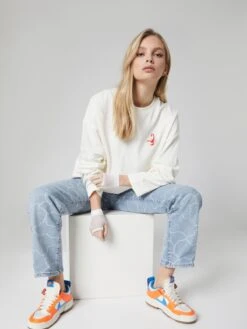 MottoprintJerseyRonde halsBorduurselsGevoerde zoom/randGeribbelde kraagOvercut schouderLabel plaatjeVoelt zacht aan