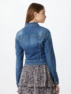 EffenDenim1-knoops manchettenGevoerde zoom/randKnop placketTurn-down kraagBorstzakOpzet-/flapzakZakken aan de zijkantContrasterende nadenGewassen effectVaste gripNiet gevoerd