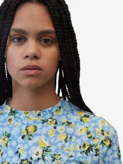 BloemenprintJerseyOpstaande kraagGevoerde zoom/randRechte zoomAll-over patroonVoelt zacht aan