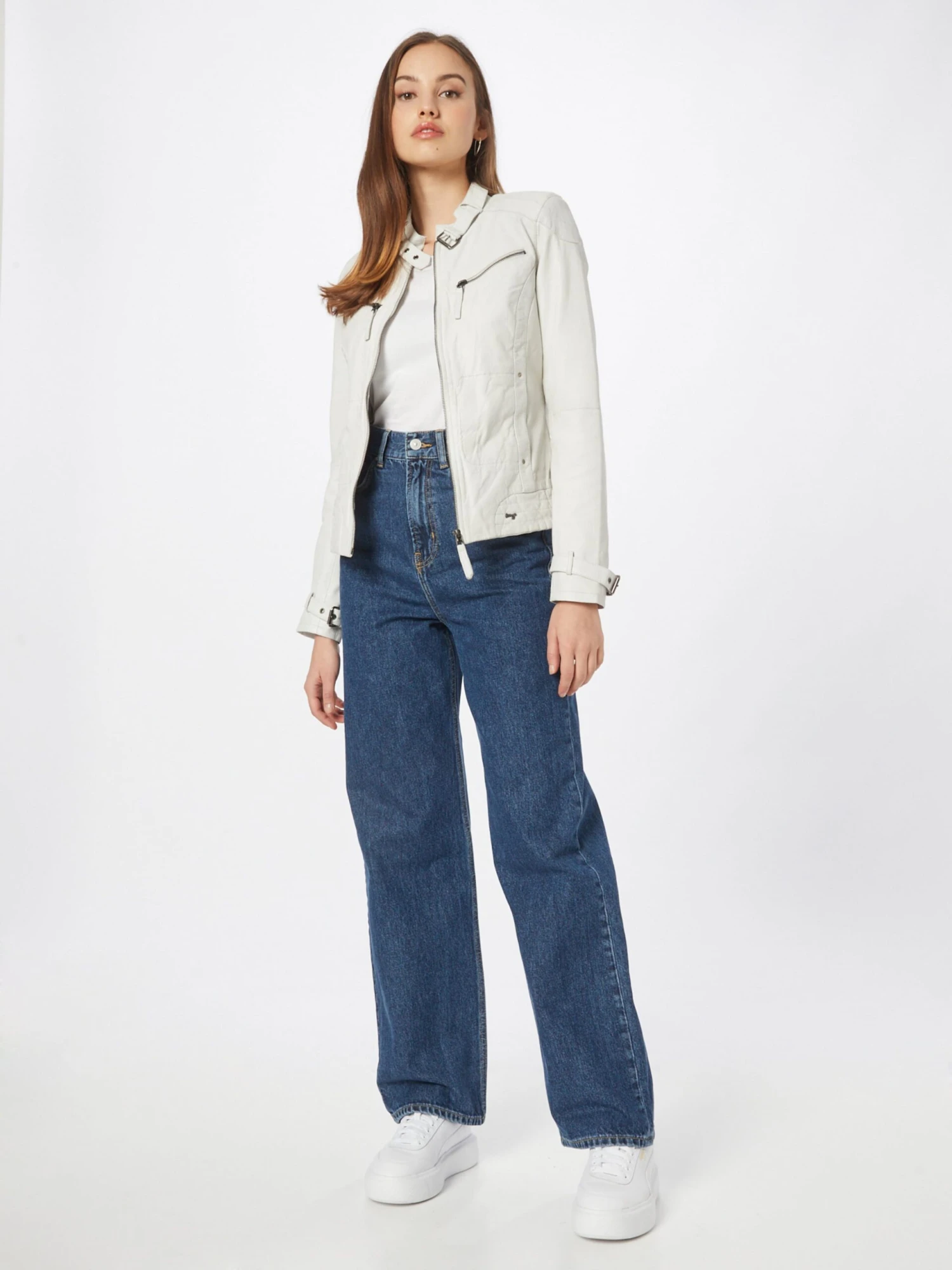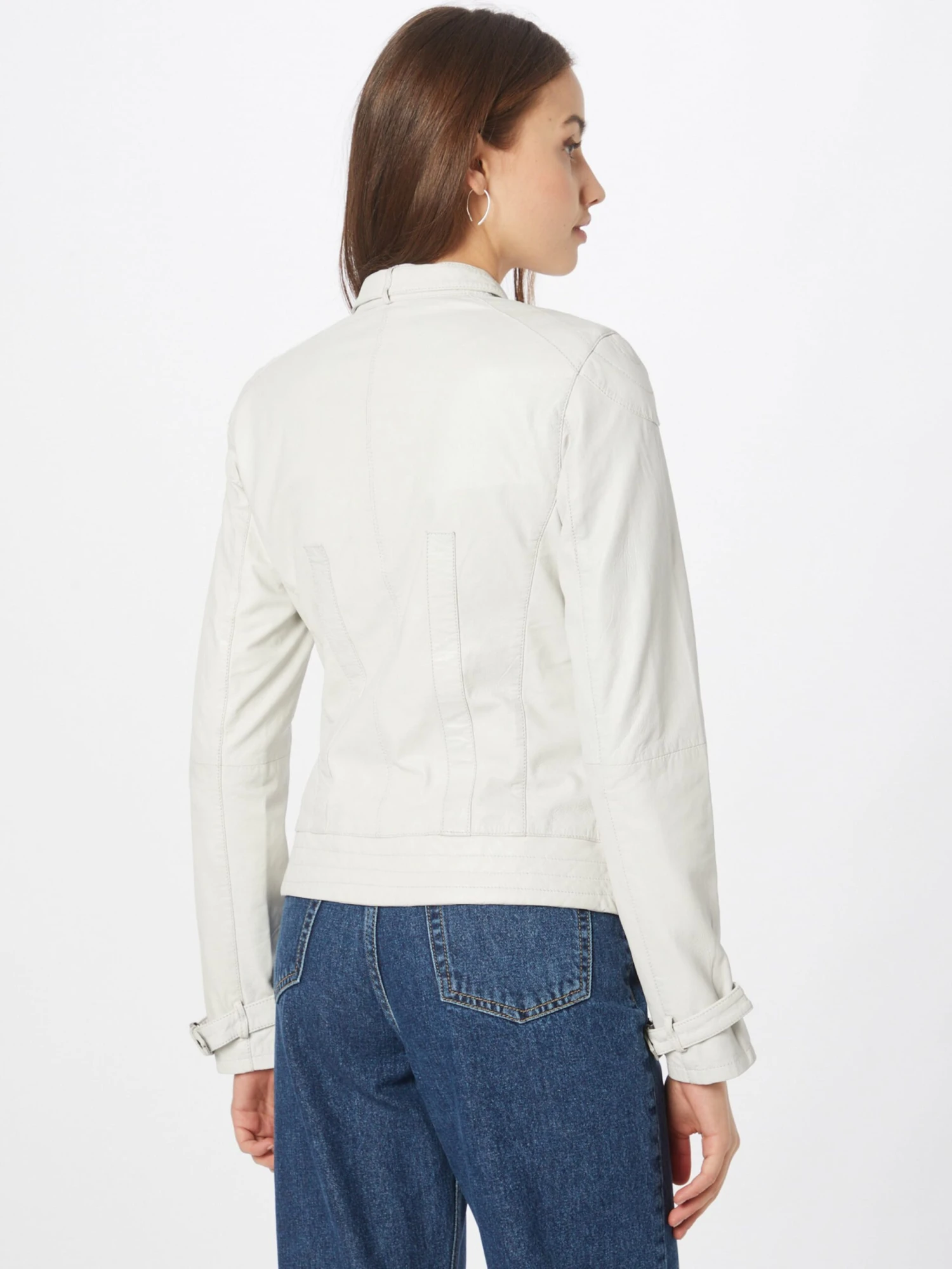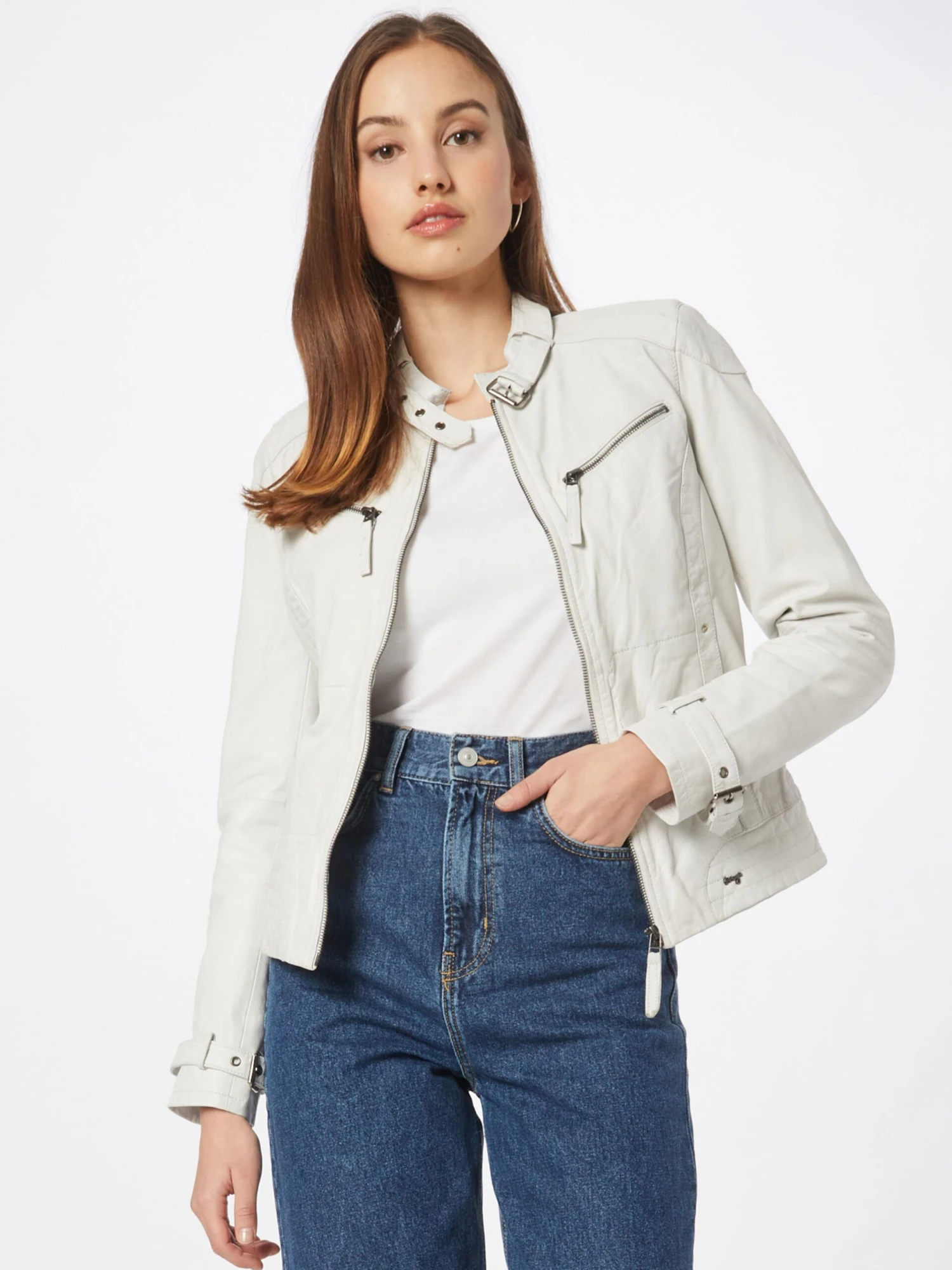 EffenLeerBikerjackStaande kraagBorstzakZakken aan de zijkantGespLabel plaatjeOp staal nadenStevige stofLicht gevoerdRitssluiting
