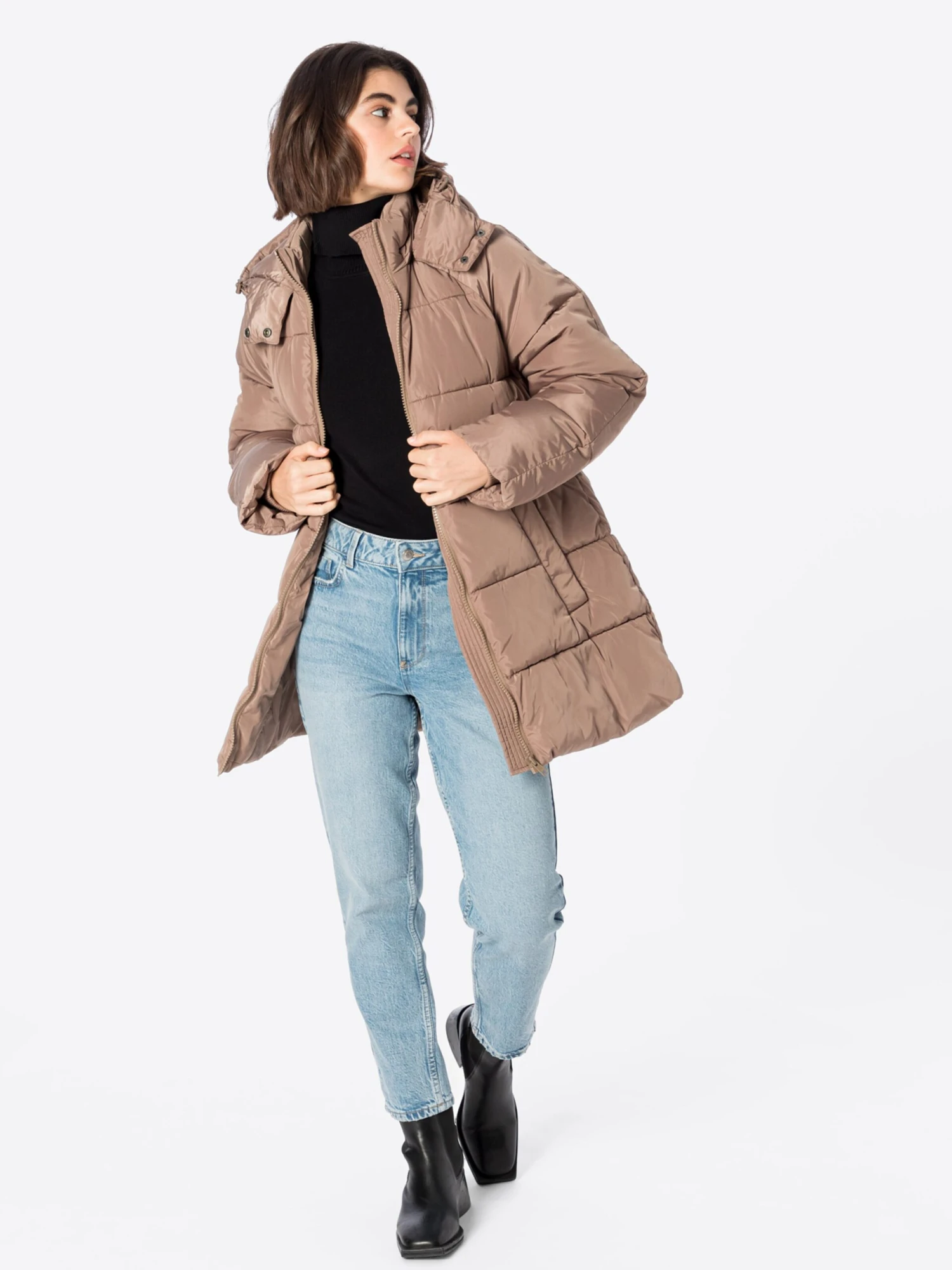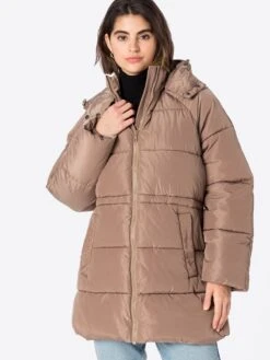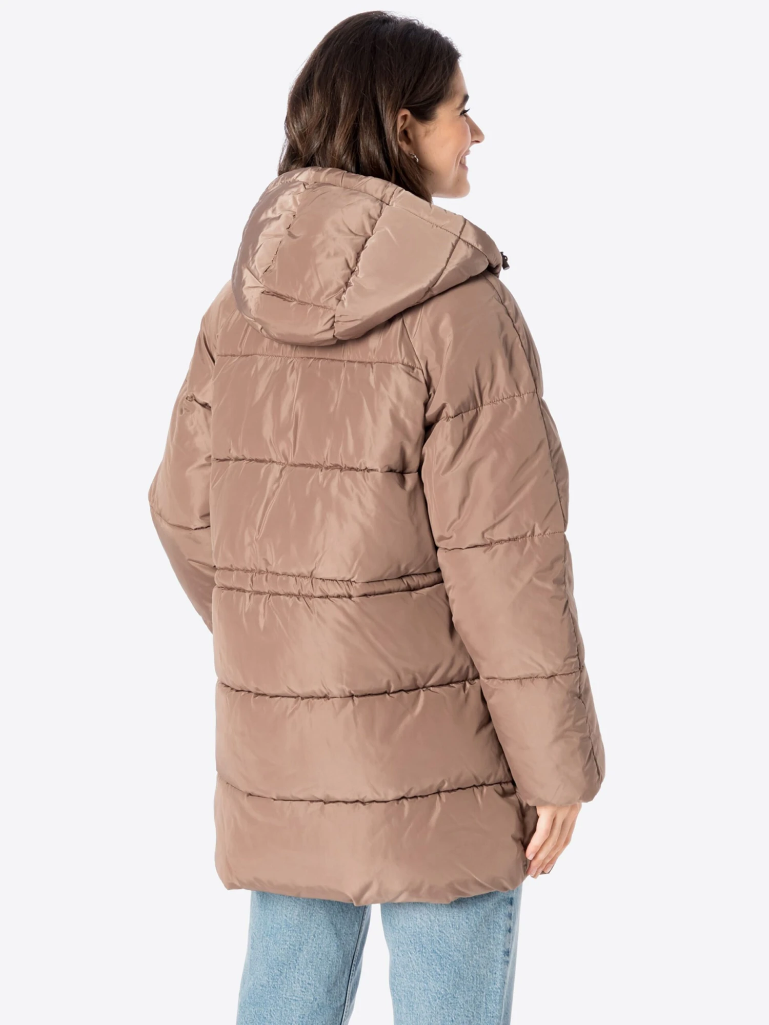 EffenGewatteerde jasAfneembare capuchonRechte zoomRaglanmouwenStaande kraagZakken aan de zijkantStikselsOp staal nadenZware stofWarm gevoerdRitssluiting