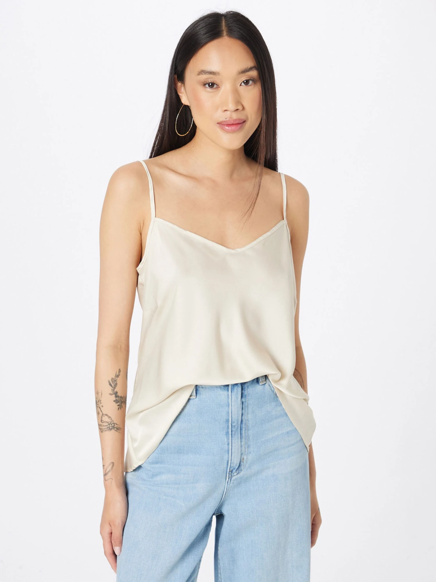 EffenSatijnSpaghettibandjesV-halsZonder kraagGevoerde zoom/randRechte zoomOverige kragenVerstelbare bandjesOp staal nadenGladde stofBlouseshirtGerecycled polyester