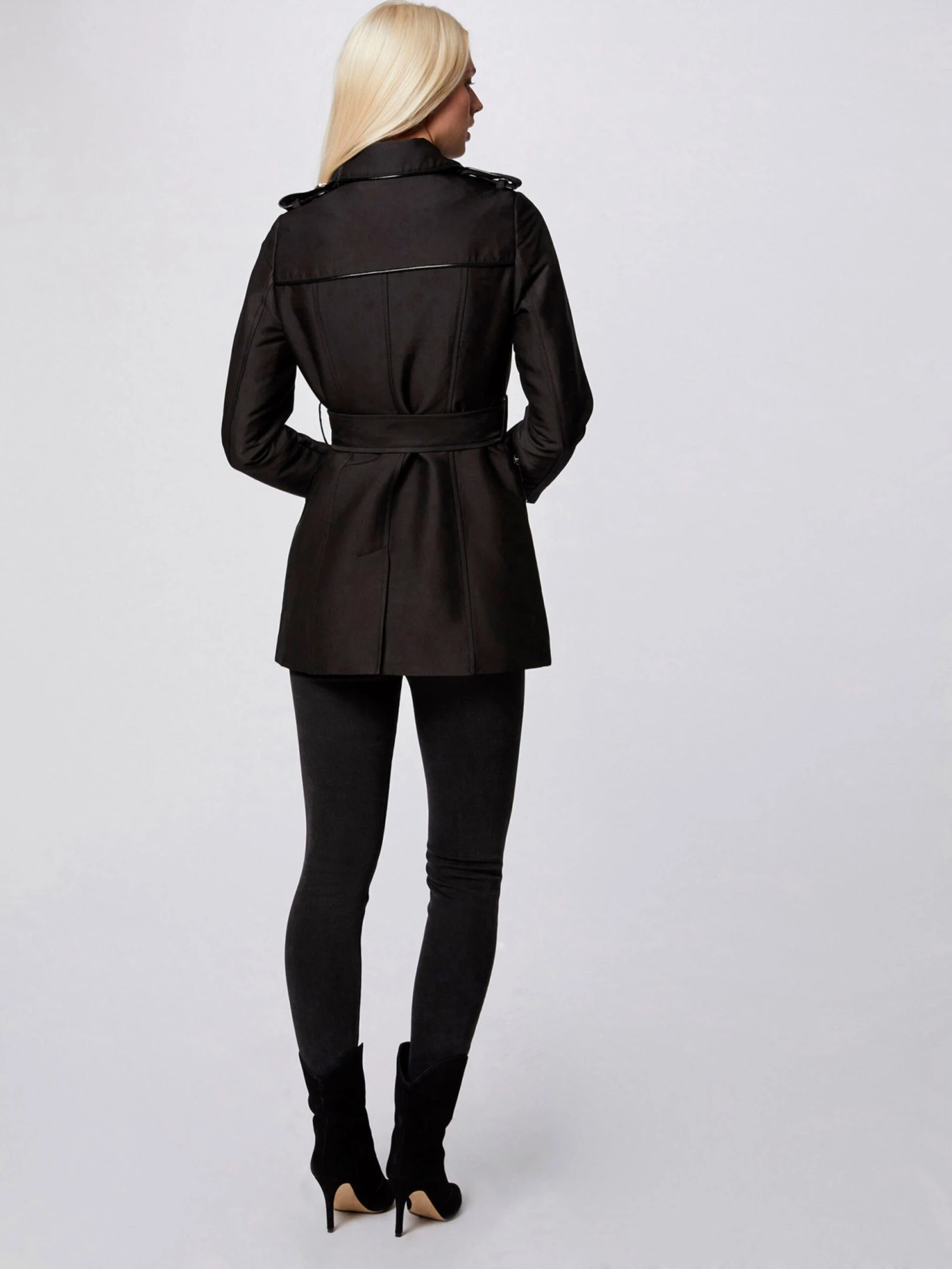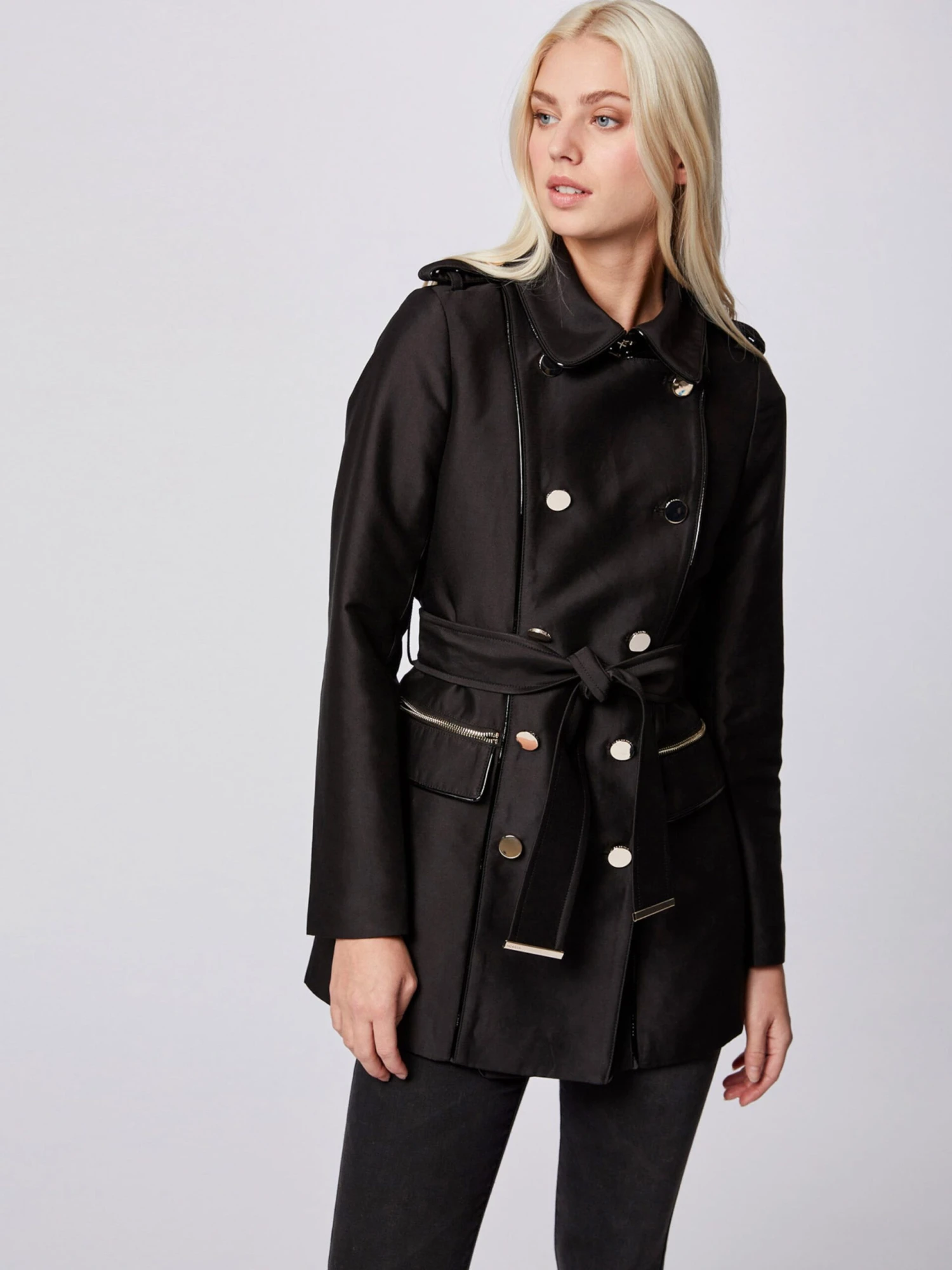 EffenKlassieke mantelRug inkeepTaillebandTurn-down kraagOm te knopen/bindenOpzet-/flapzakPaillettenLicht gevoerdKnoopsluiting