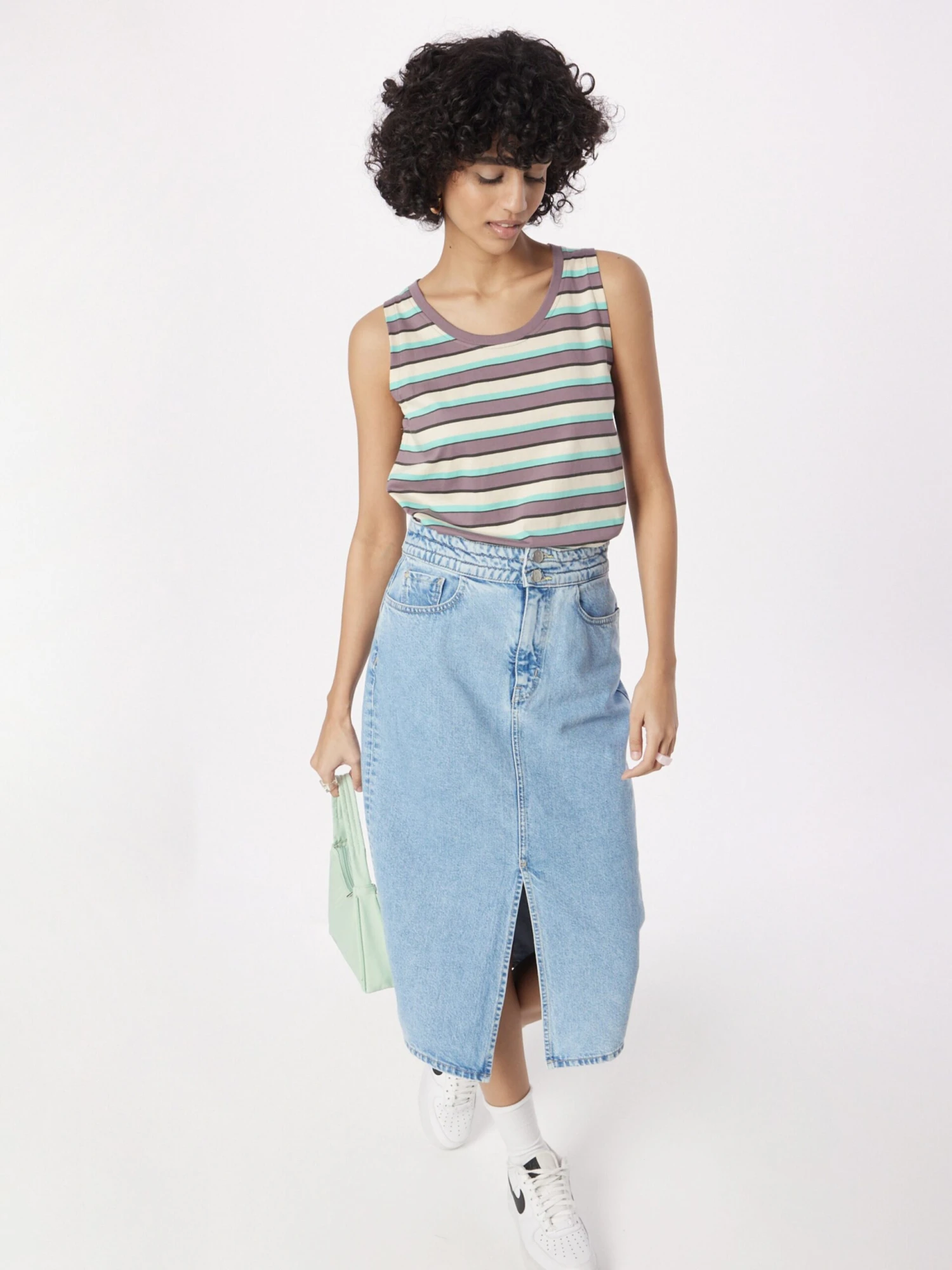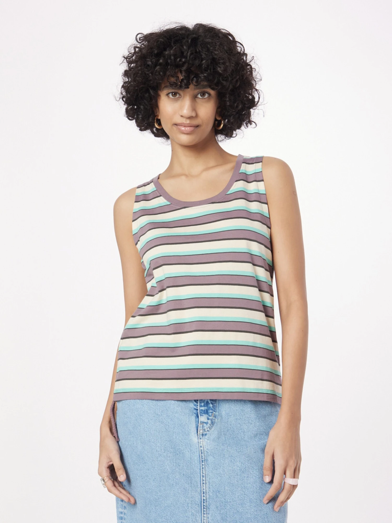 GestreeptJerseyBrede bandjesRonde halsGevoerde zoom/randGeribbelde kraagMet band/snoerNektapeAll-over patroonVoelt zacht aanGlobal Organic Textile Standard (GOTS) – organicCERES – 086