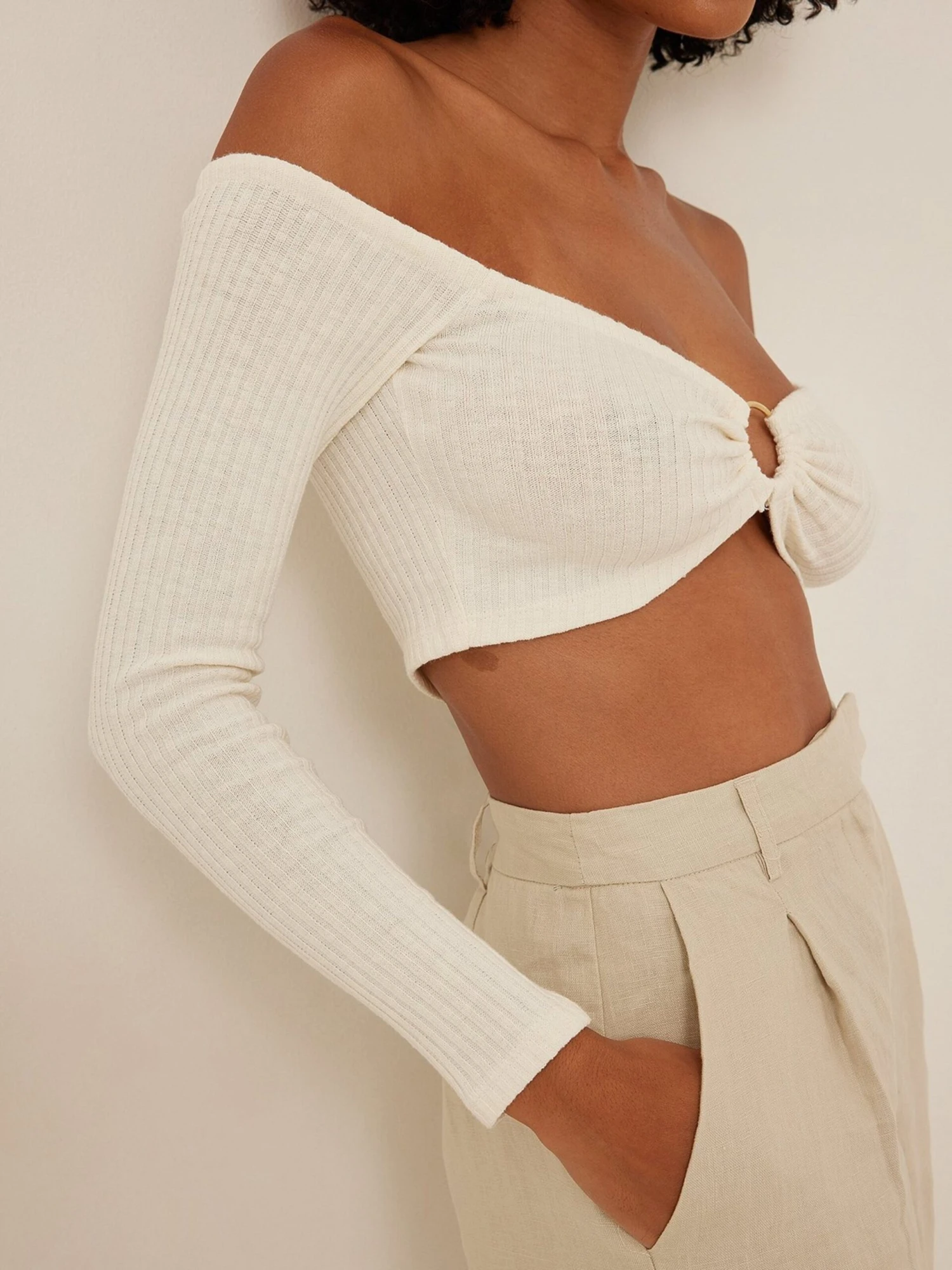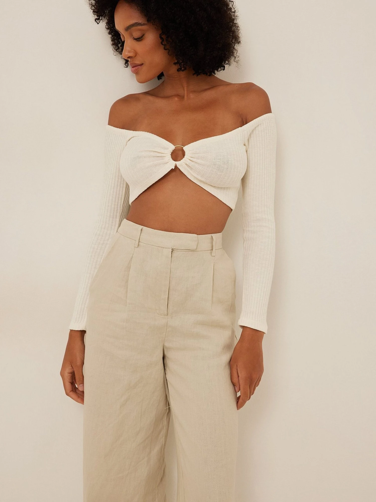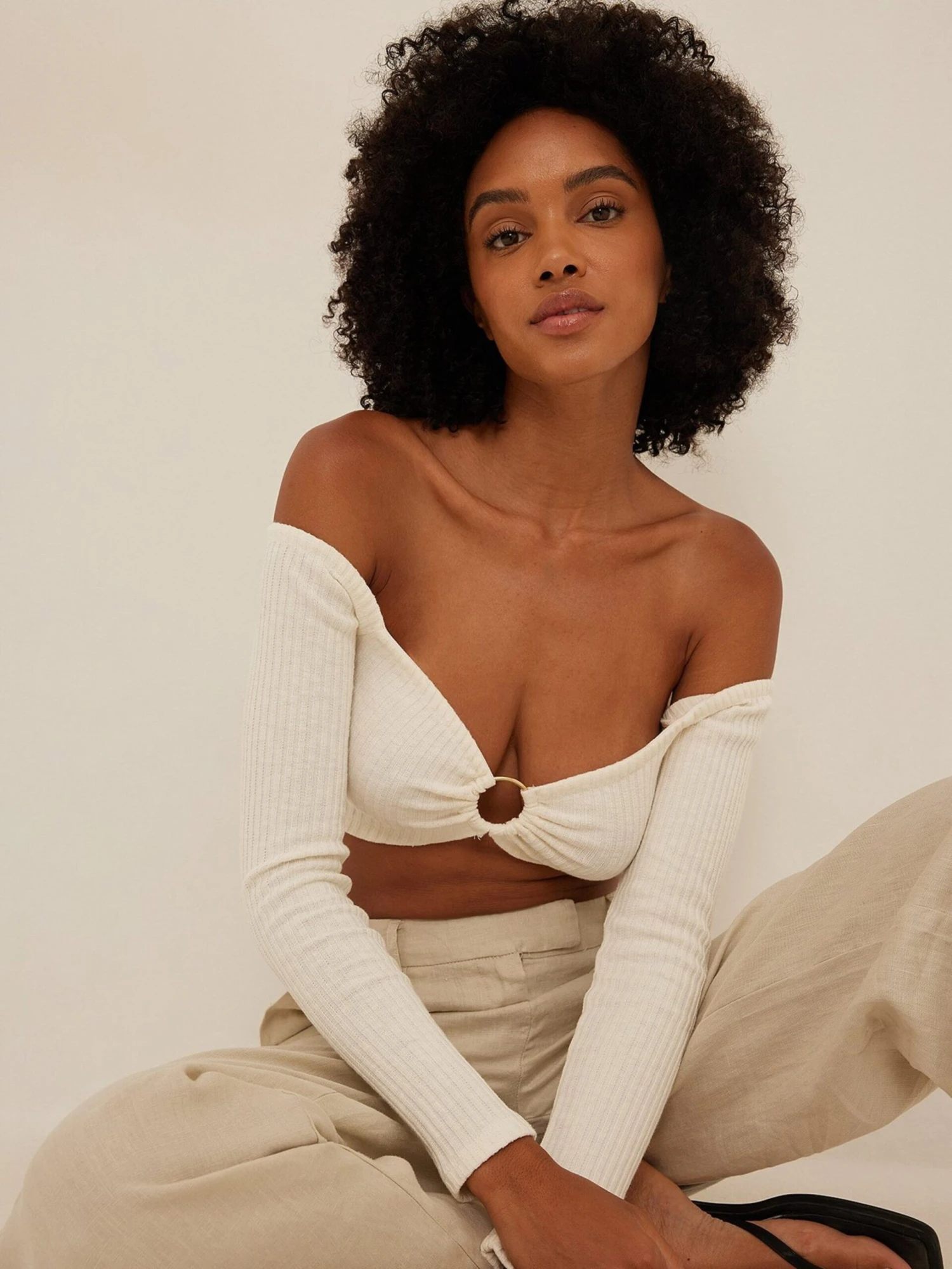 EffenJerseyCut-outsGedrapeerdAmerikaanse schouderGeribd ceintuurtjeGeribbeld gebreidDiepe snit/decolletéApplicatiesVoelt zacht aan