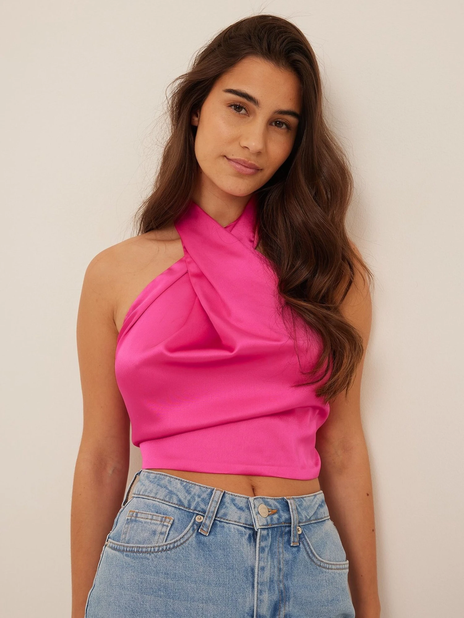 EffenJerseyHaltermodelCut-outsGedrapeerdGerecycled polyester