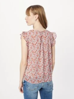 BloemenprintZonder kraagCut-outsVolantGevoerde zoom/randRechte zoomKeyholesluitingAll-over patroonGladde stofBlouseshirtKnoopsluiting