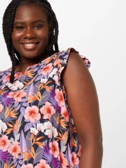 BloemenprintViscoseRonde halsRuchesElastische taille/zoomIngelegde kraagAll-over patroonGladde stofLENZING™ ECOVERO™ Viscose*