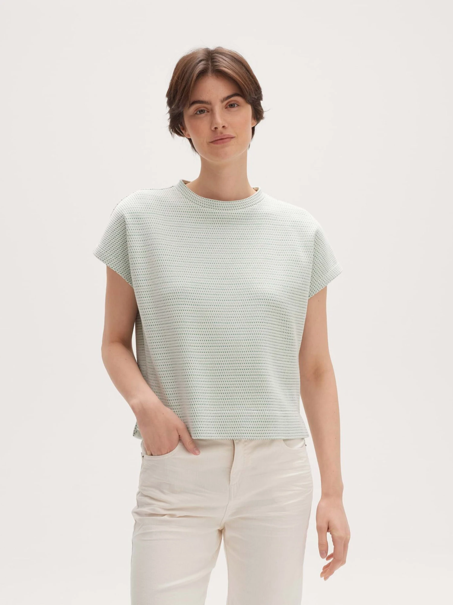 JerseyRonde halsGevoerde zoom/randGesneden mouwGeribbelde kraagAll-over patroonVoelt zacht aan