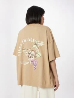 MotiefprintJerseyRonde halsGevoerde zoom/randGeribbelde kraagOvercut schouderNektapeOp staal nadenVoelt zacht aanLabel print