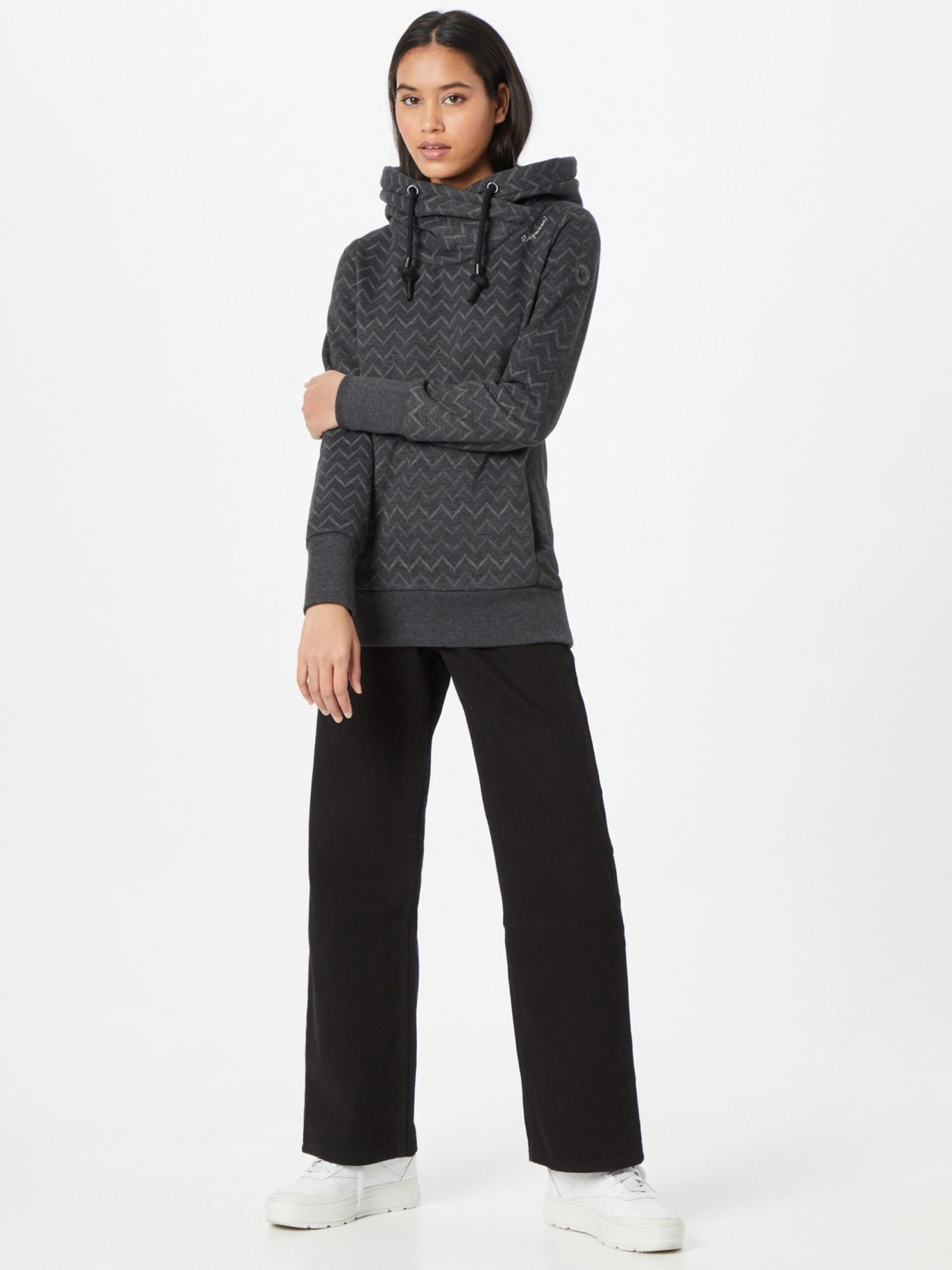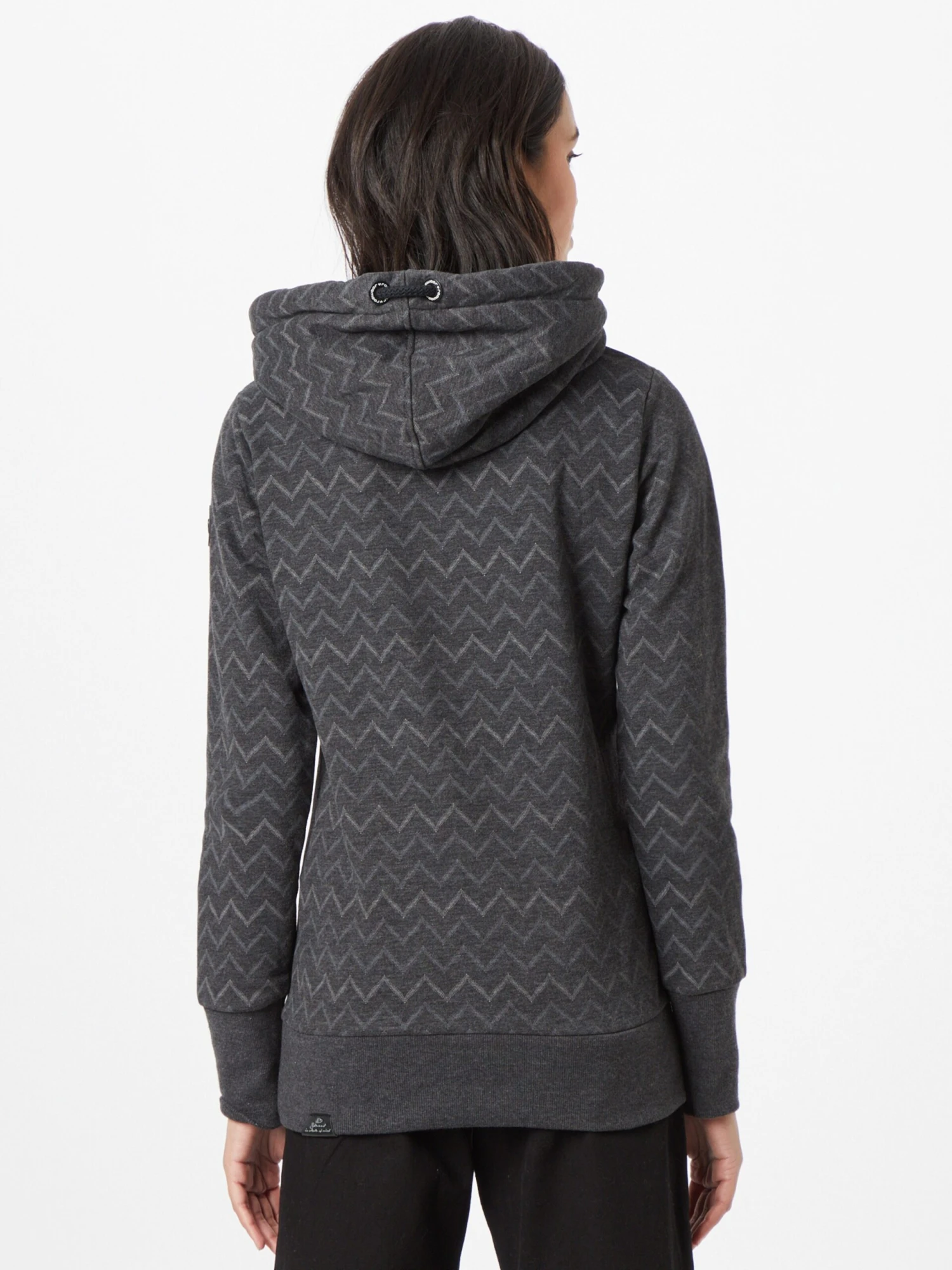 SweatstofCapuchonBorduurselsPatchesCapuchon met trekkoordGeribd ceintuurtjeZakken aan de zijkantAll-over patroonLabel borduurwerkVoelt zacht aanMetalen oogjes