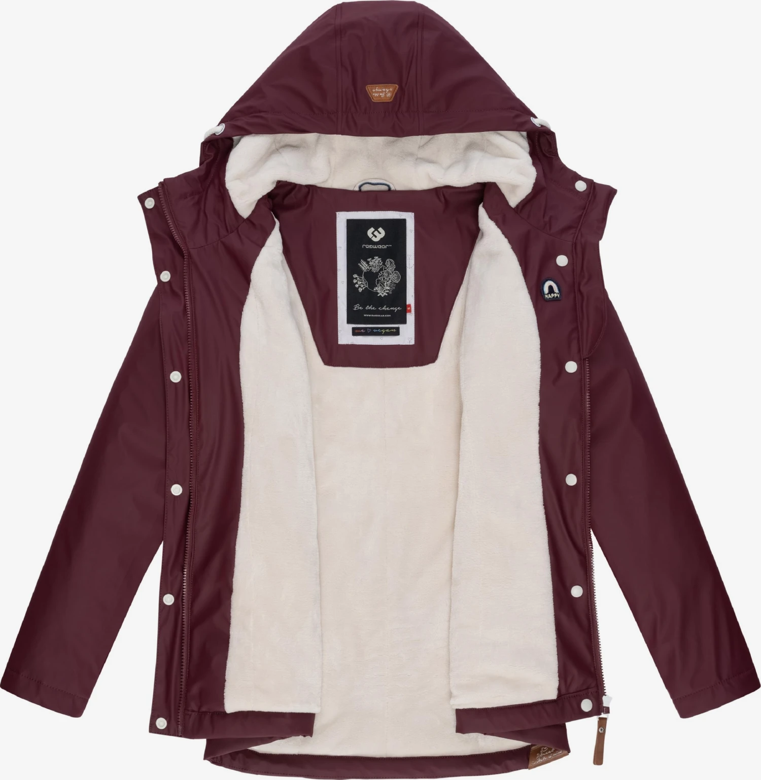 EffenRegenjasMet hoge stormkraagTrekkoord in de zoomRitszakken aan de zijkantVerlengd rugpandMet capuchonLicht gevoerdRitssluiting