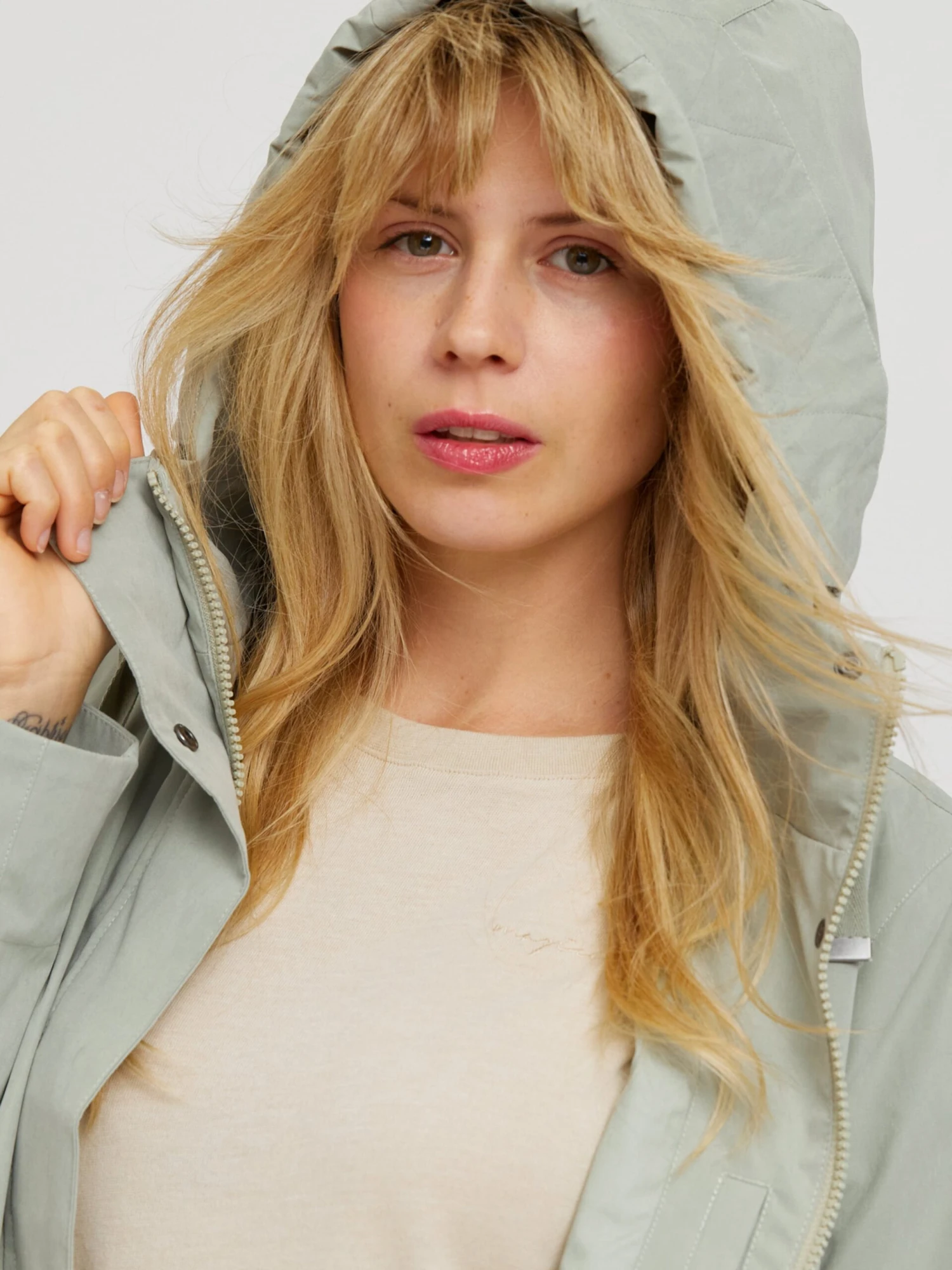 EffenRegenjasTaille met trekkoordCapuchon met trekkoordVerborgen ritsOpzet-/flapzakLabel printWaterafstotendLicht gevoerdRitssluiting