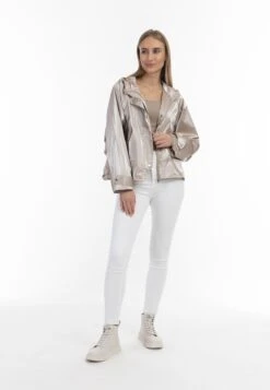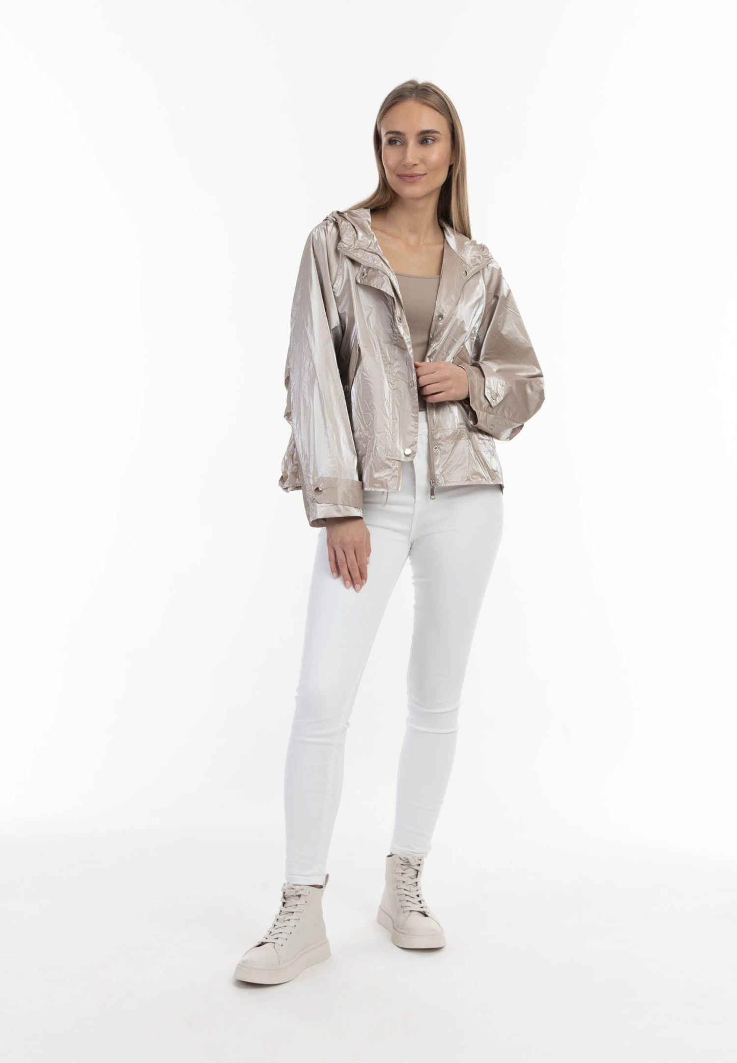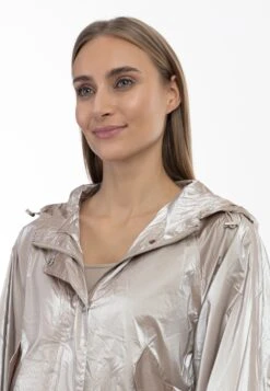 EffenRegenjasDrukknopenCapuchon met opstaande kraagRaglanmouwenVerborgen ritsOpzet-/flapzakVerstelbare capuchonGeaccentueerd tunnelkoordGlanzendGecoatGladde stofLicht gevoerdRitssluiting