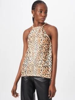 DierenprintJerseyHaltermodelOpstaande kraagCut-outsPlooienGedrapeerdGevoerde zoom/randOm te knopen/bindenAll-over patroonLichte stof