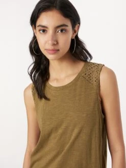 EffenJerseyBrede bandjesRonde halsCut-outsBorduurselsMeshGevoerde zoom/randGeribbelde kraagKeyholesluitingNektapeOp staal nadenFijne stofVoelt zacht aan