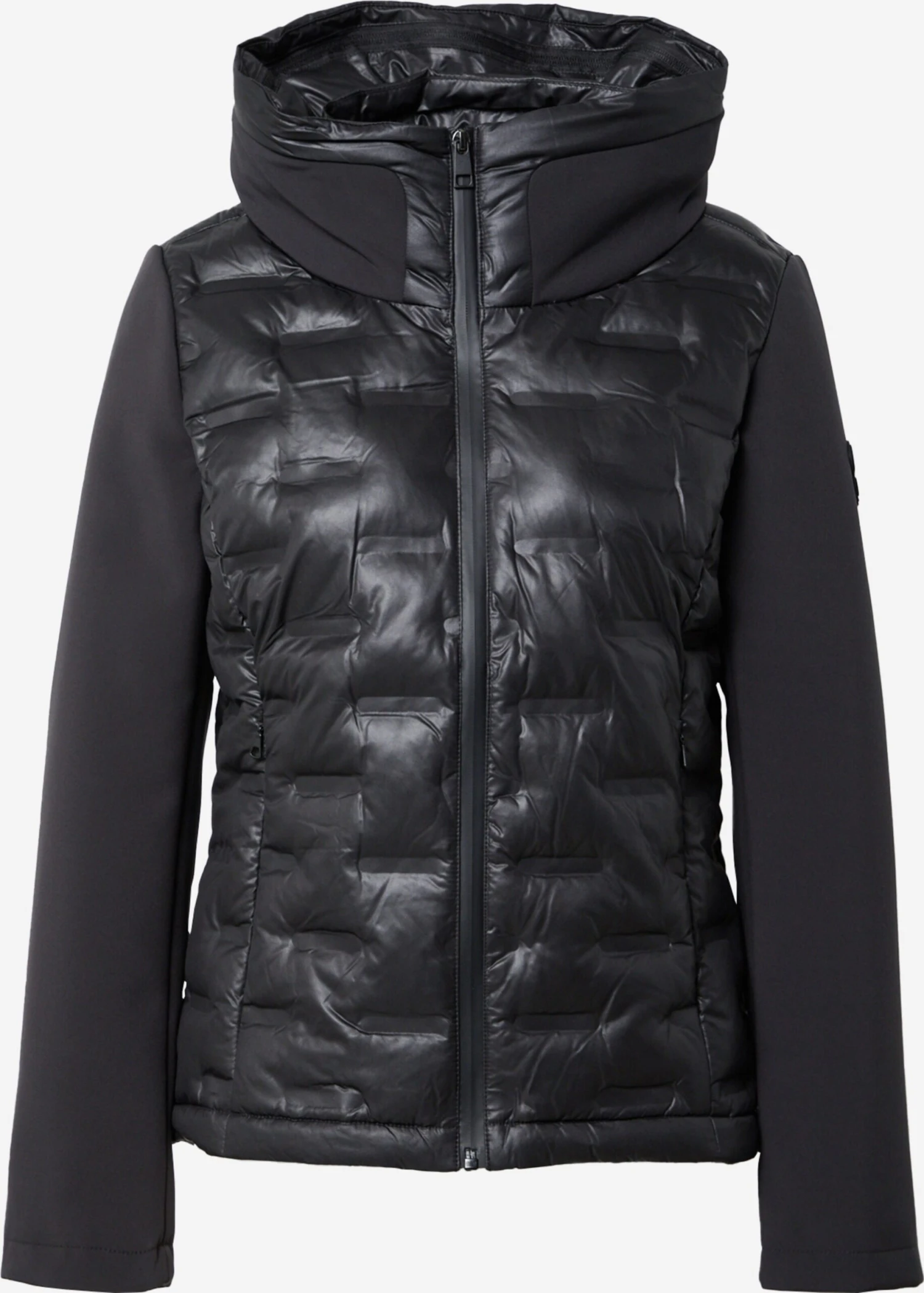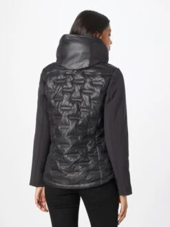 EffenGewatteerde jasMet capuchonRitszakken aan de zijkantOp staal nadenGladde stofWarm gevoerdRitssluiting