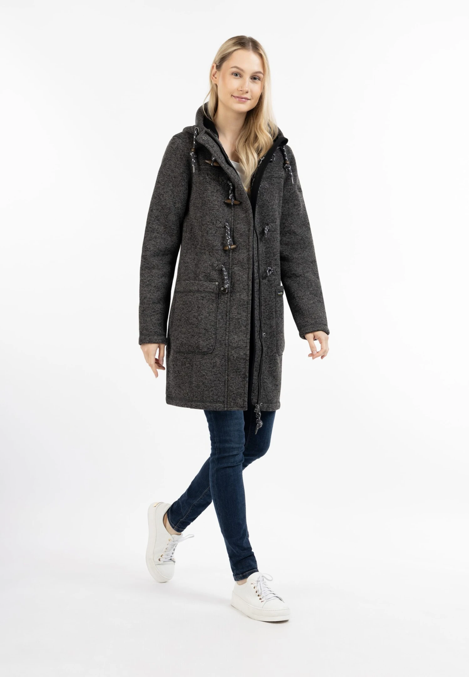 MélangeFleeceDufflecoatLicht gevoerdHoutje touwtje sluiting