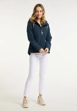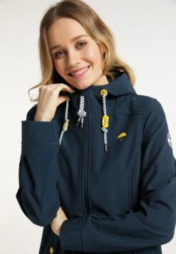 EffenSoftshellRegenjasRitssluitingCapuchon met opstaande kraagCapuchon met trekkoordDeelnadenVerlengd rugpandOpzet-/flapzakZakken aan de zijkantFleece binnenvoeringLabel patch/label flagLabel borduurwerkOp staal nadenMetalen oogjesLicht gevoerd