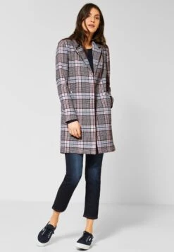 GeruitKlassieke mantelRechte zoomRecht modelKnop placketRevers kraagZakken aan de zijkantAll-over patroonGladde stofLicht gevoerdKunststof/rubber