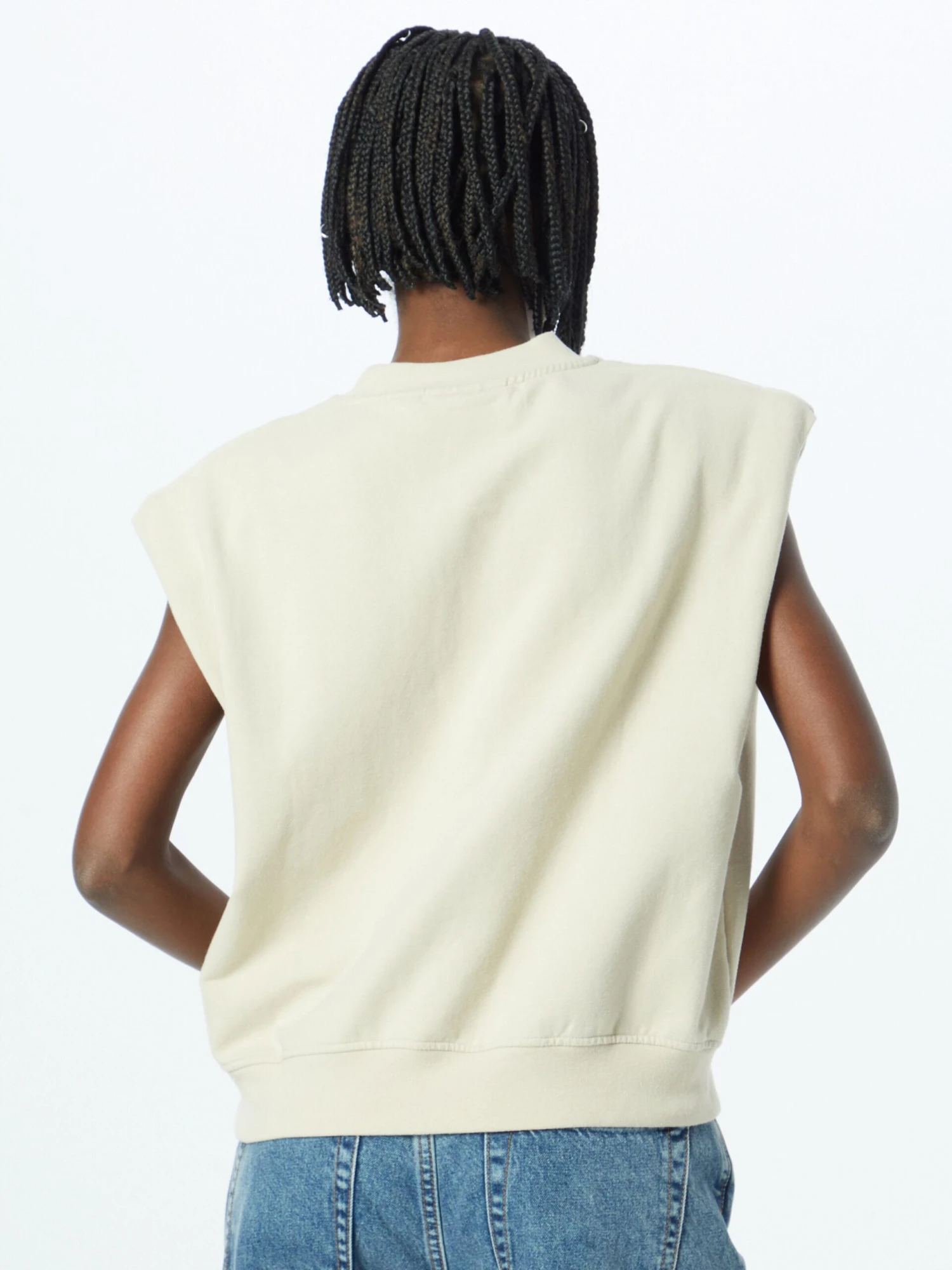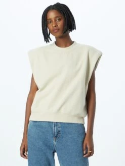 EffenSweatstofRonde halsGesneden mouwGeribbelde kraagRechte zoomGeribd ceintuurtjeNektapeOp staal nadenVoelt zacht aan