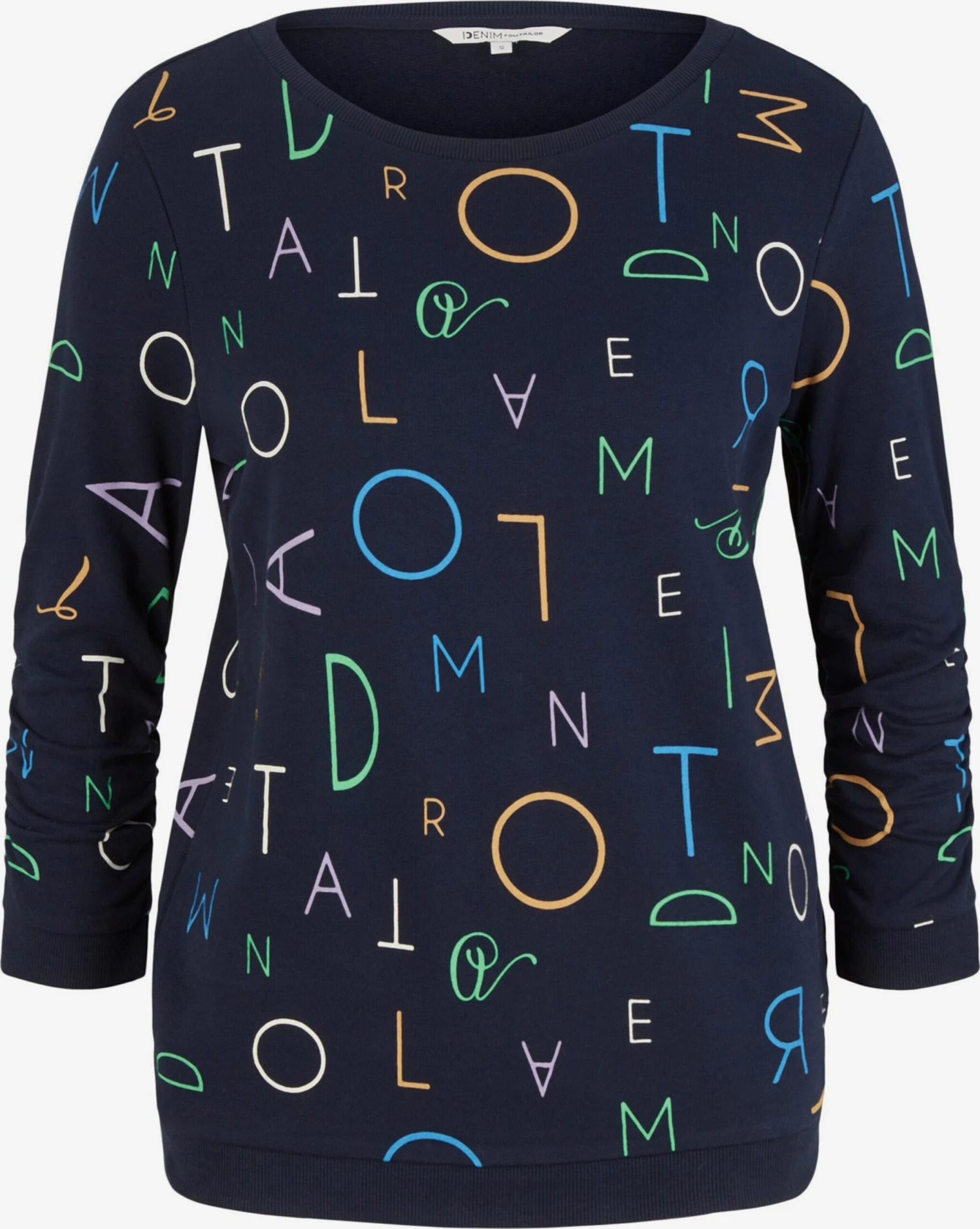 MottoprintSweatstofRonde halsGevoerde zoom/randGeribbelde kraagRechte zoomGeribd ceintuurtjeAll-over patroonVoelt zacht aan