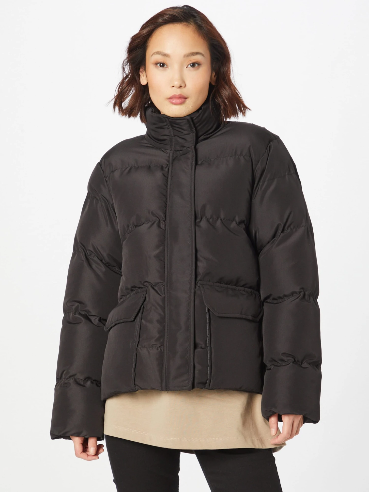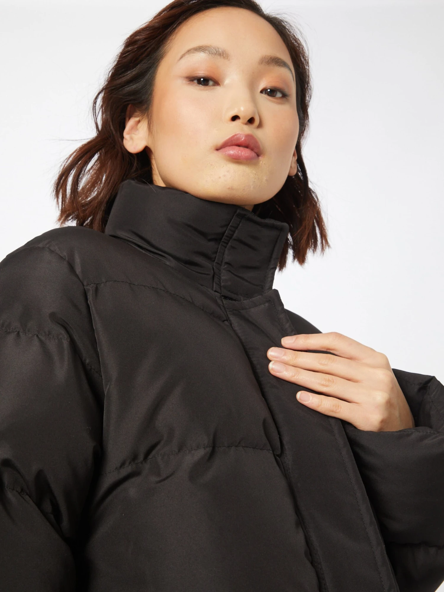 EffenGewatteerde jasStaande kraagVerborgen ritsOpzet-/flapzakOp staal nadenStevige stofWarm gevoerdRitssluiting