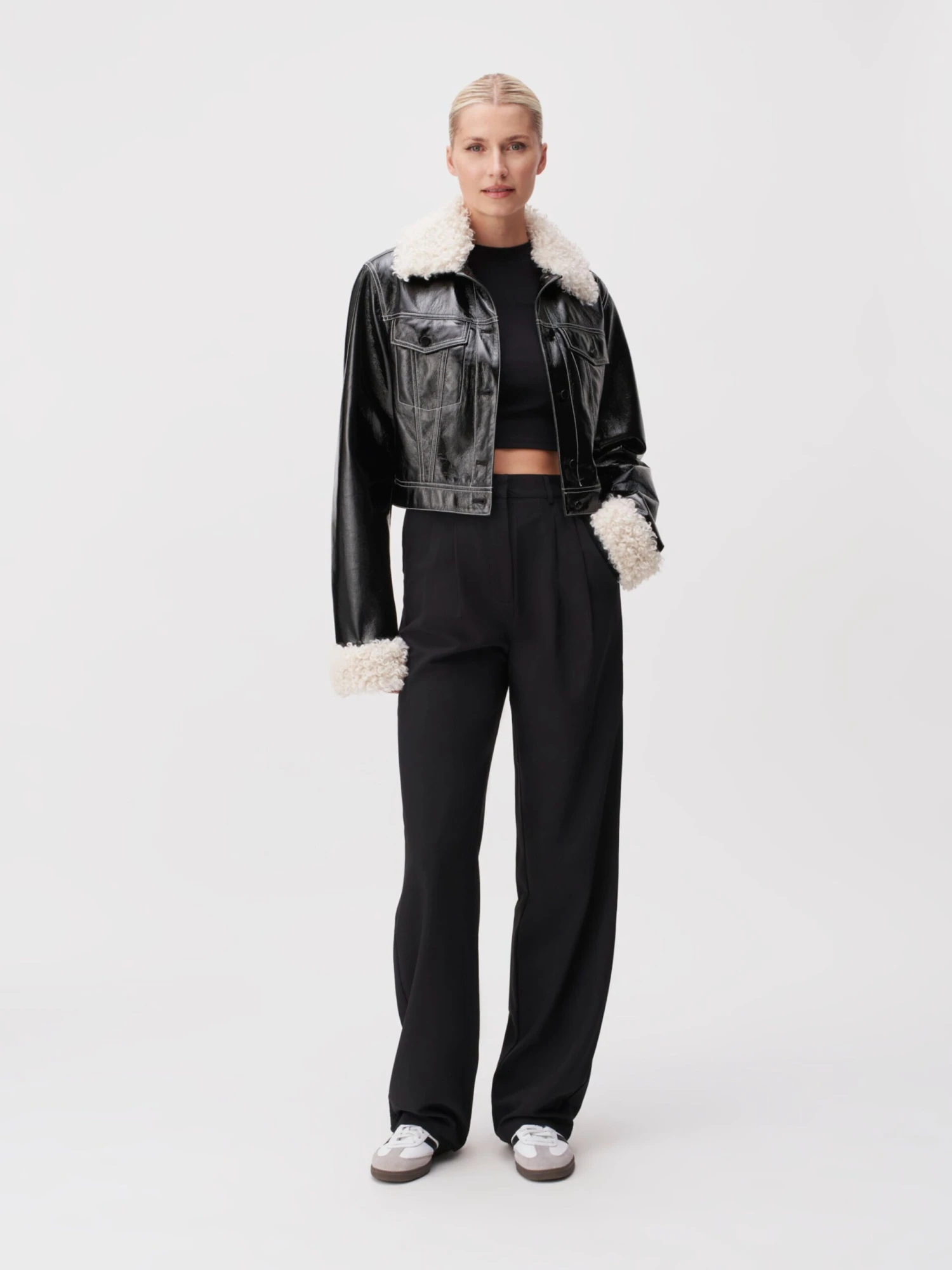 EffenRechte zoomCapuchon met afneembare nepbont kraagKnop placketContrast voeringBorstzakContrasterende insertsContrasterende nadenGladde stofNiet gevoerdKnoopsluiting