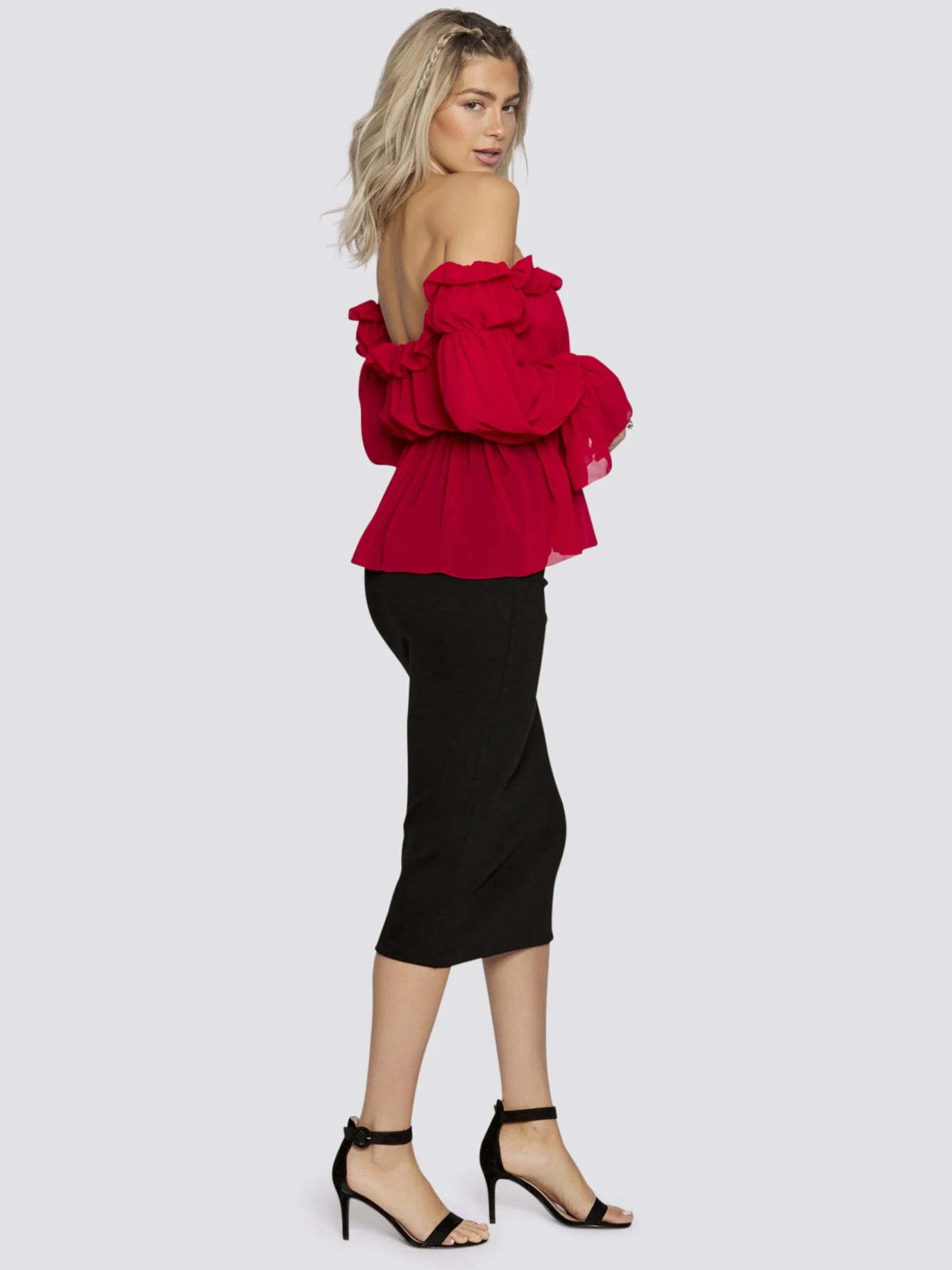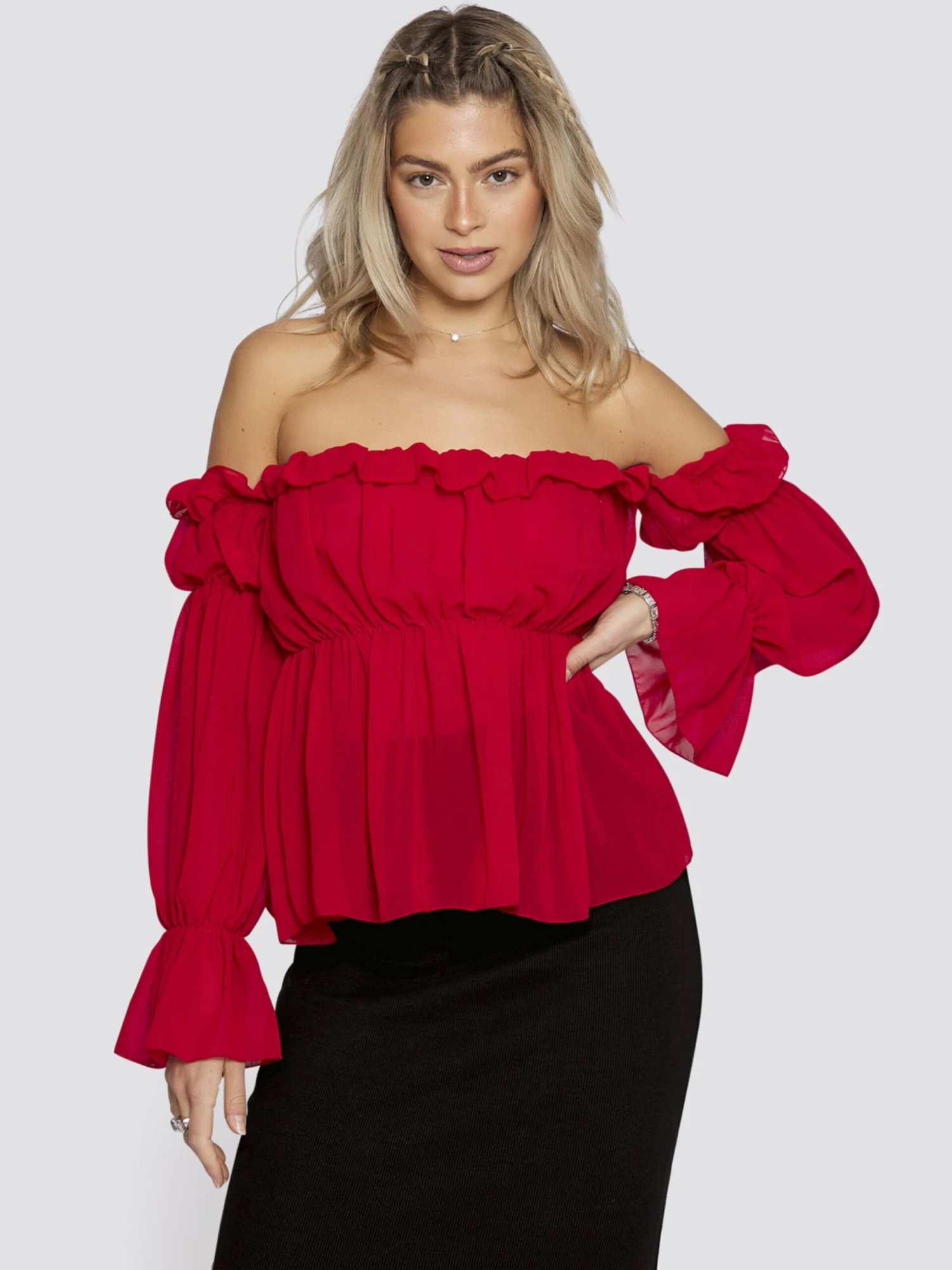 EffenCarmen halsZonder kraagRuchesGedrapeerdBacklessTaille met trekkoordBlouseshirt